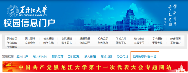 校园信息门户”网站,点击进入“常用链接”栏的“四级薪酬问答平台”(如图),即可提出问题或建议。