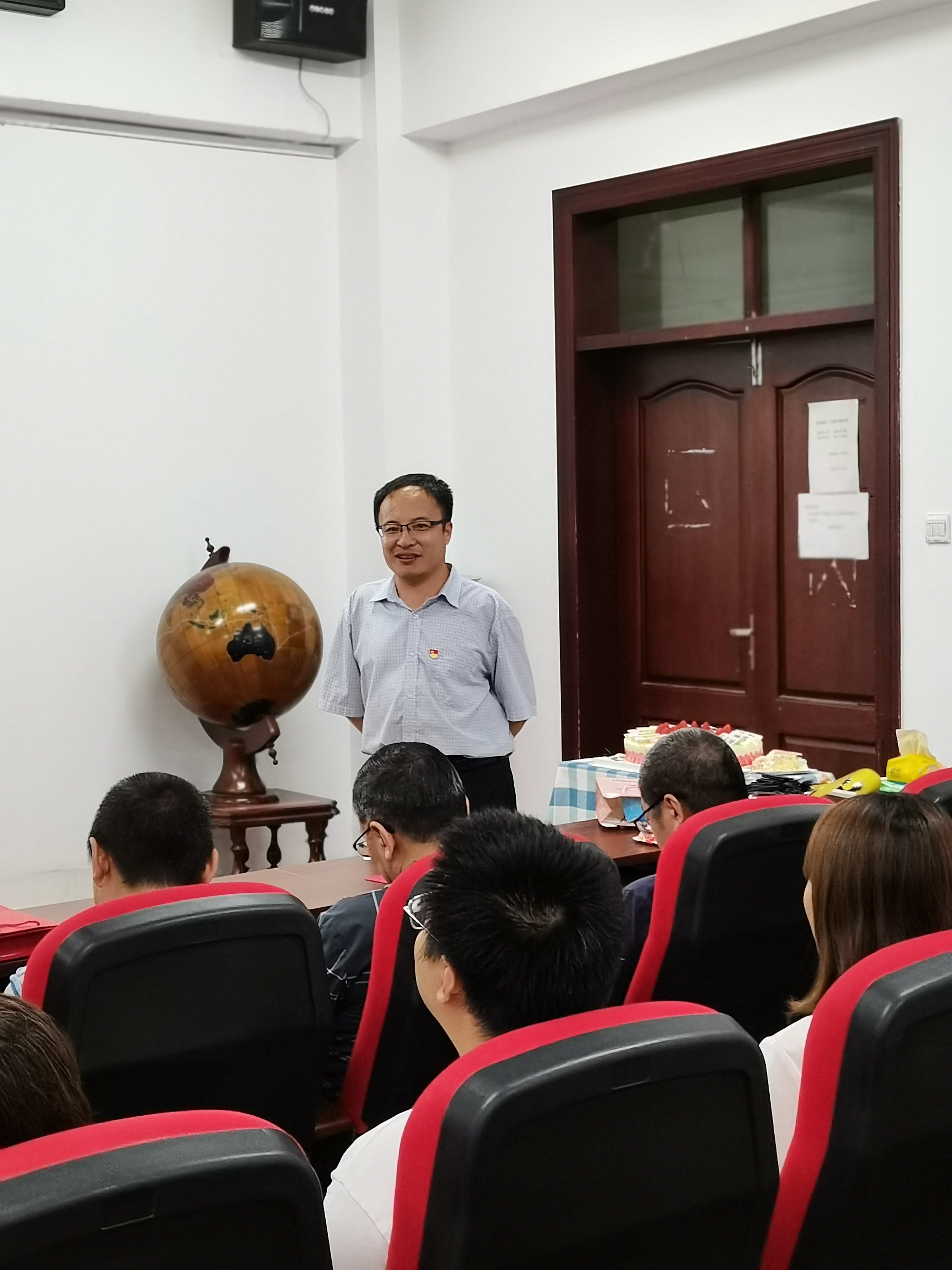 活动中,学院还为部分党员同志过了“政治生日”,由柴文华、李楠明、孙庆斌三位老党员为每一位入党日期为上半年的教师党员赠送了特制的政治生日贺卡和礼物,贺卡上准确地记录着每一位党员的入党日期,在党年龄,时刻提醒大家要牢记党员身份,践行党的初心使命;赠送给党员的签字笔上清晰地印有“为党育人 为国育才”八个大字,寓意全体教师党员将以高度的责任感与使命感落实立德树人根本任务,作育英才,为党和国家培养和输送合格的建设者和接班人。