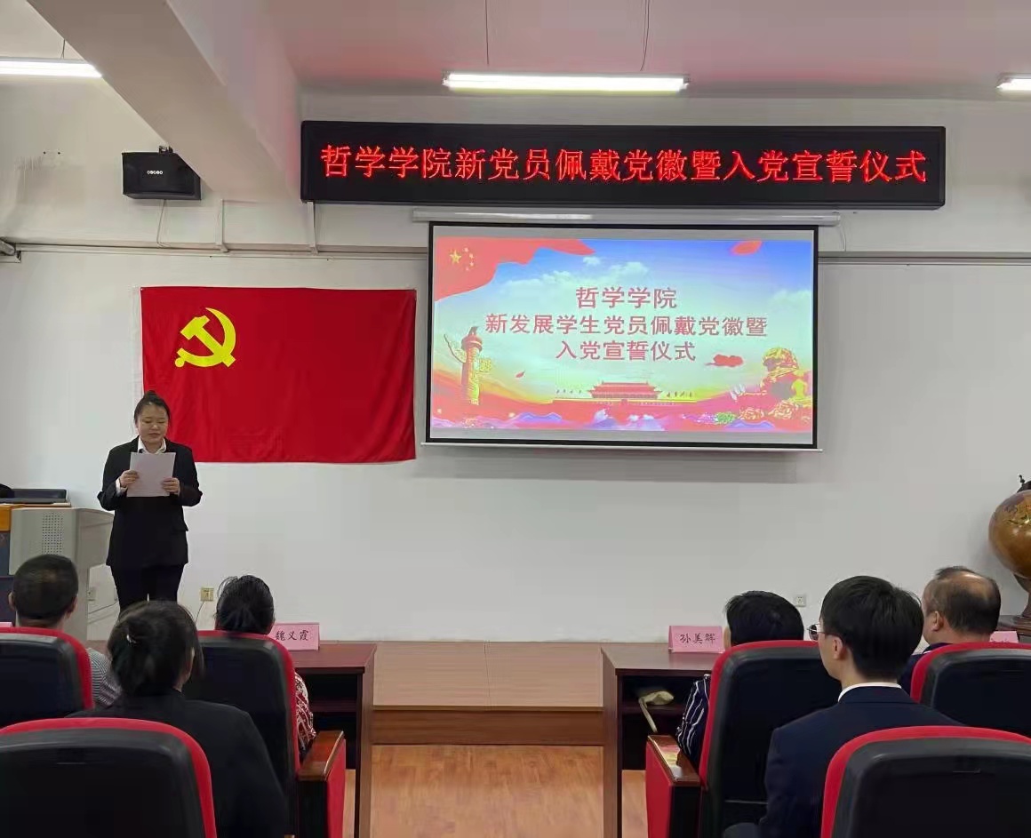 宣誓结束后,新学生党员代表刘雪涛进行发言,讲述自己由积极分子到预备党员的身份转变过程,回顾了百年党史,代表全体新学生党员郑重承诺,在未来的道路中身为党员将以不变的初心,坚定的信念面对挑战,并时刻与群众保持紧密联系,努力提升思想境界,坚持学习党的理论知识,将理论转化为实践,全心全意为人民服务,最后表达了对于党组织精心栽培,老师辛勤培养的感谢。