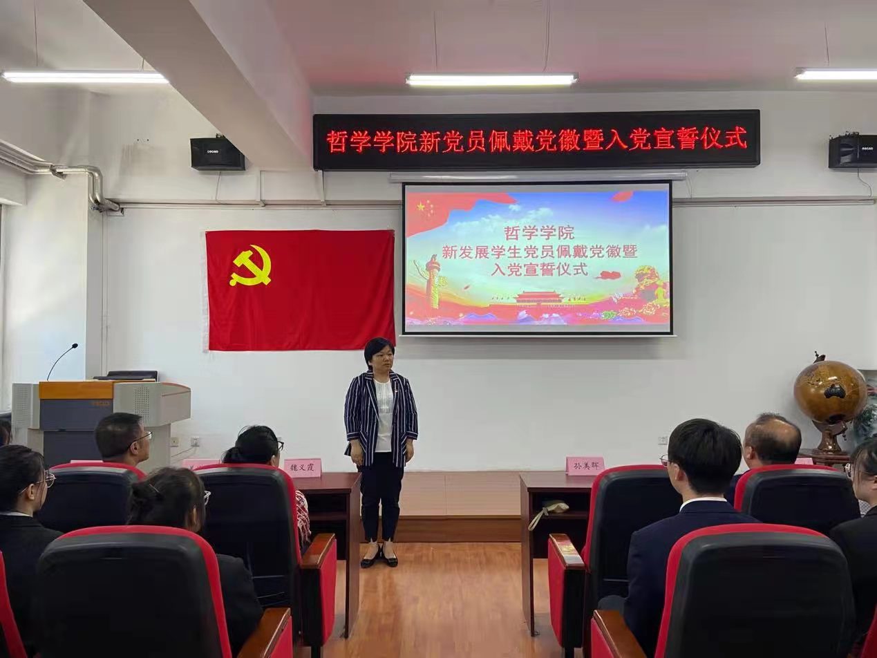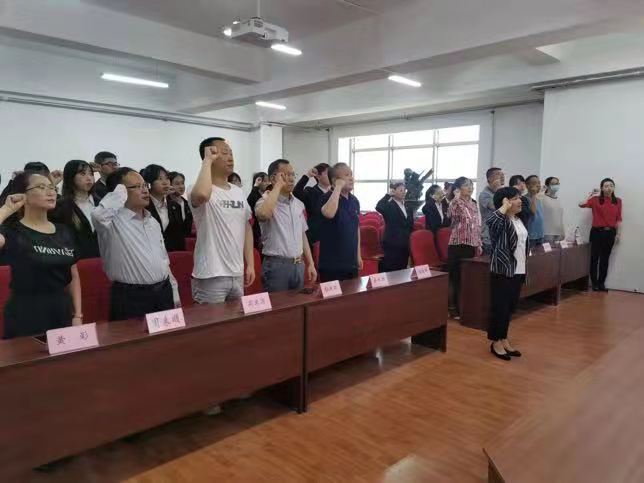 为加强学院学生党支部建设,坚定党员理想信念,提升新党员党性意识,果冻传媒 于2021年6月23日早上9:30,在汇文楼937室举行果冻传媒 开展新发展学生党员佩戴党员徽章暨入党宣誓仪式。仪式由果冻传媒 党总支副书记张丽丹老师主持,党总支书记孙美晖老师、院长蒋红雨老师、副院长周来顺老师、副院长高来源老师、正处级辅导员孙庆斌老师、党总支秘书黄影老师。出席本次活动的还有教师代表魏义霞老师、姜海波老师、刘振怡老师、郭春明老师、林菲老师、18级辅导员张博伦老师及17名新学生党员参加本次活动。
