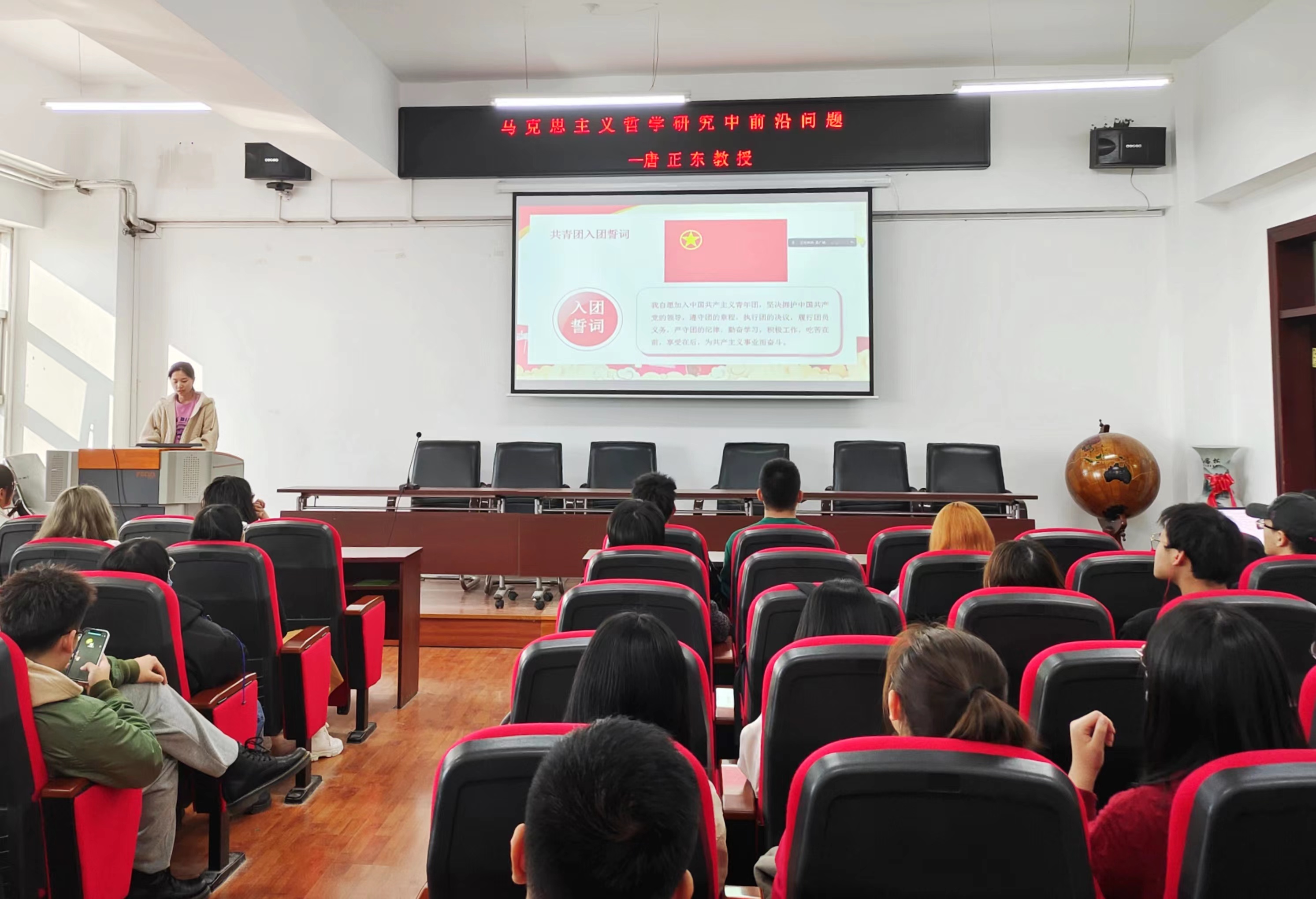 在汇文楼937隆重举行21级新生入团仪式,出席此次仪式的有团委副书记焦瑞老师,哲学二班团支书陈秋凡主持仪式,21级全体团员参加。