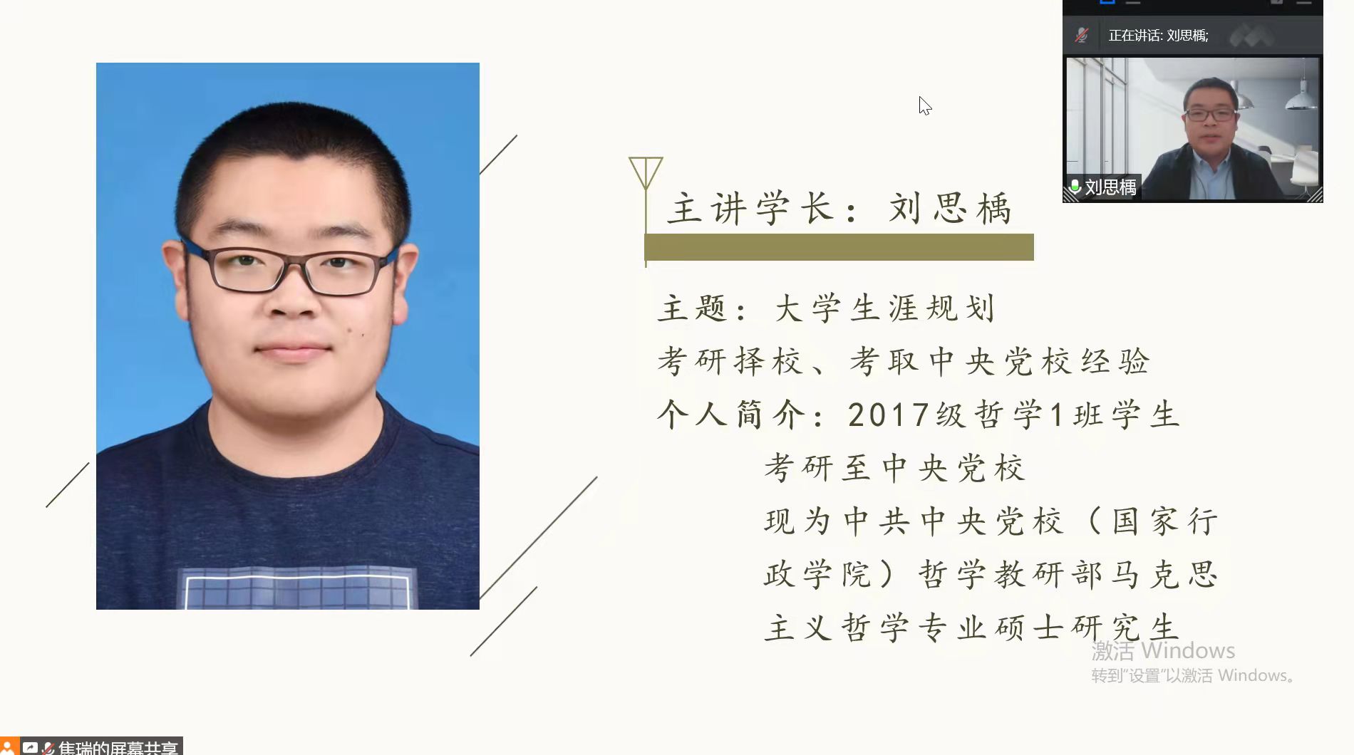 接下来,刘思楀学长为大家介绍了大学的生涯规划。他结合自身经验,在考研院校选择导向、高校选调生政策,以及考研参考书目等方面给予了同学们宝贵的经验指导。除此以外,学长强调了了果冻传媒 的学术地位和“帮带”传统,大大增强了同学们的学科自信。
