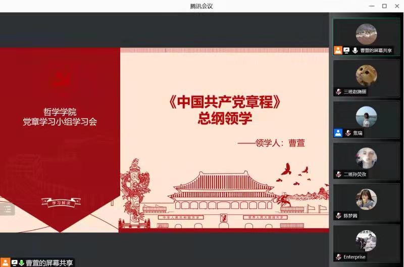 首先,曹萱学长带领同学们了解了《中国共产党章程》的完善发展历程及重要地位。他指出,《中国共产党章程》是中国共产党为实现党的纲领、规定党内事务的根本法规,是党的各级组织和全体党员必须遵守的基本准则和规定,具有最高党法、根本大法的效力。因此,学习《中国共产党章程》是十分重要且必要的。