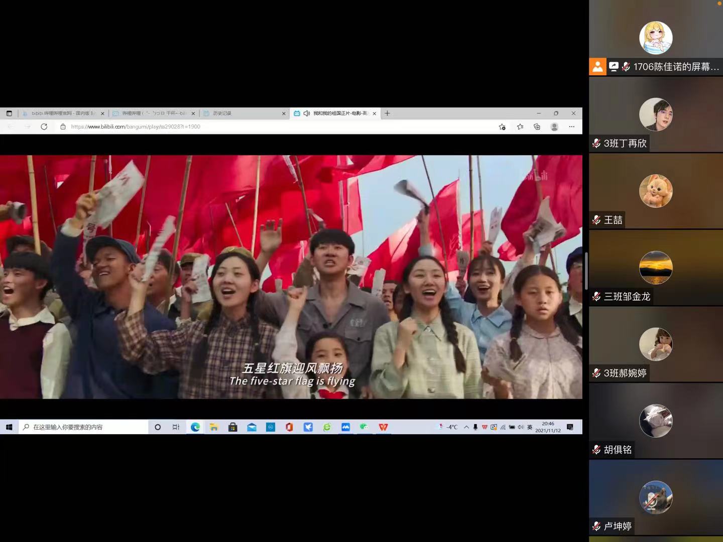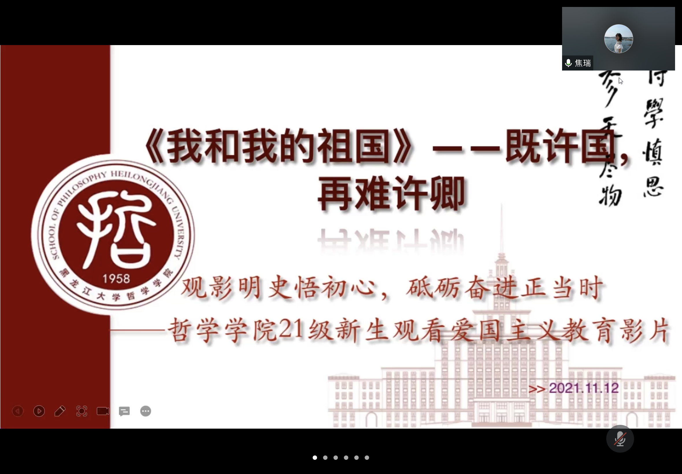 为了加强2021级哲学学生的爱国意识,让大家更好的感悟时代精神,2021年11月12日晚,果冻传媒 开展了线上观影活动,同学们共同观看了电影《我和我的祖国》的片段。