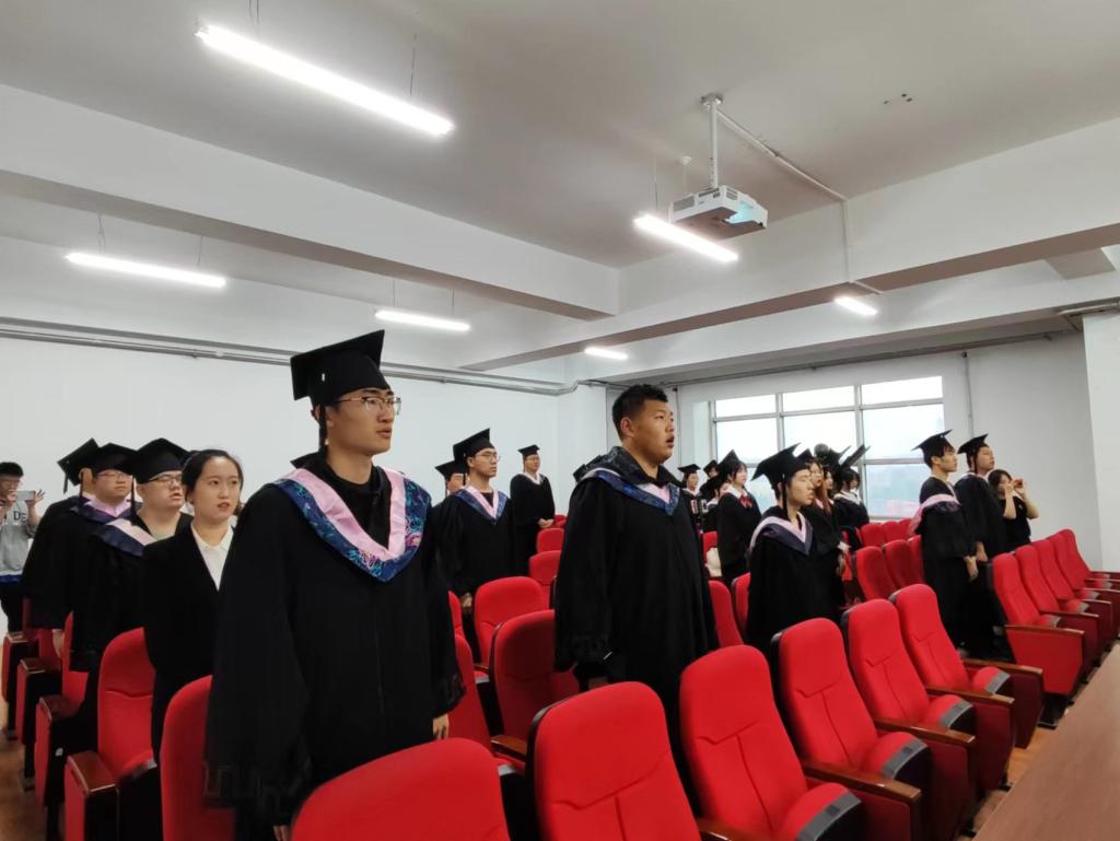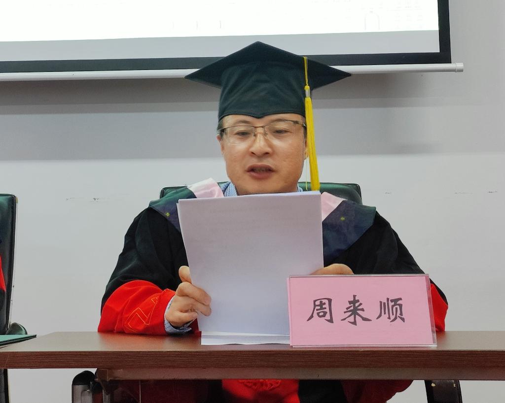 会议第二项,学院副院长周来顺老师宣读了毕业资格审查报告和学位审批报告,与会领导老师为毕业生进行毕业证书授予及学位颁授。