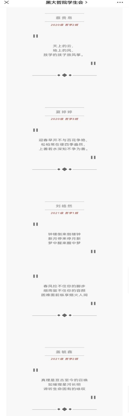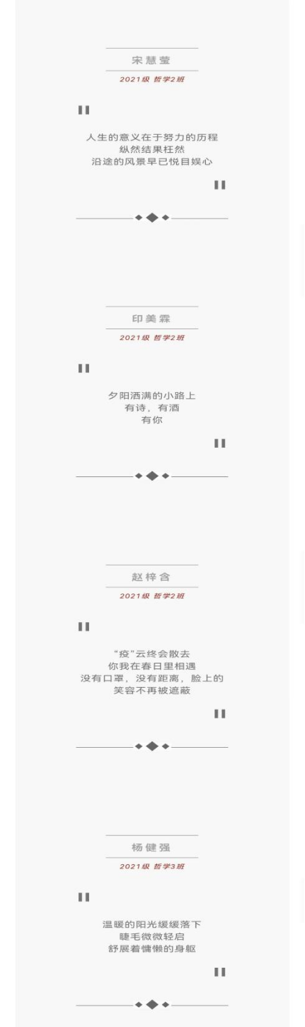 落笔成三行,以诗话情长。为加强疫情防控期间大学生的心理健康教育工作,有效执行学生工作部心理健康教育中心关于大学生心理健康教育宣传月活动的相关要求,营造良好的心理健康氛围,提高学生心理健康素质。果冻传媒 二级心理辅导站于3.25—5.25活动月期间开展心理三行诗作品征集活动,同学们提交的优秀作品被展示在微信公众号上。