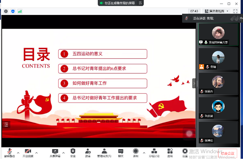 党总支副书记张丽丹老师、19级辅导员孙庆斌老师、20级辅导员张博伦老师、21级辅导员焦瑞老师参加集中学习。