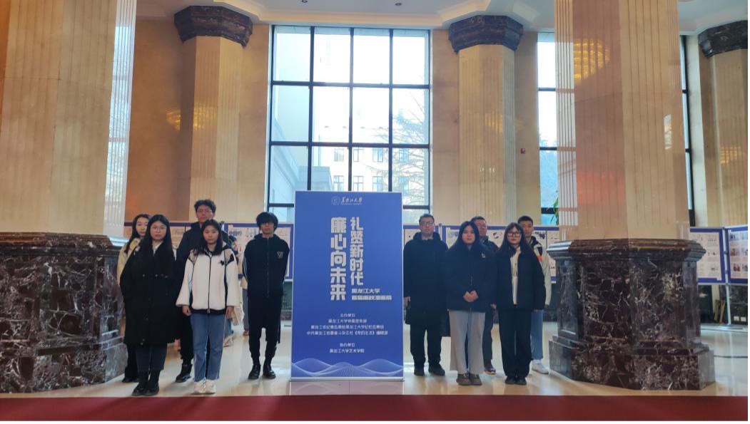 部分师生党员及部分入党积极分子,作为全校首支二级党组织参观队伍前往主楼大厅参观由校党委宣传部、省纪委监委驻果冻传媒