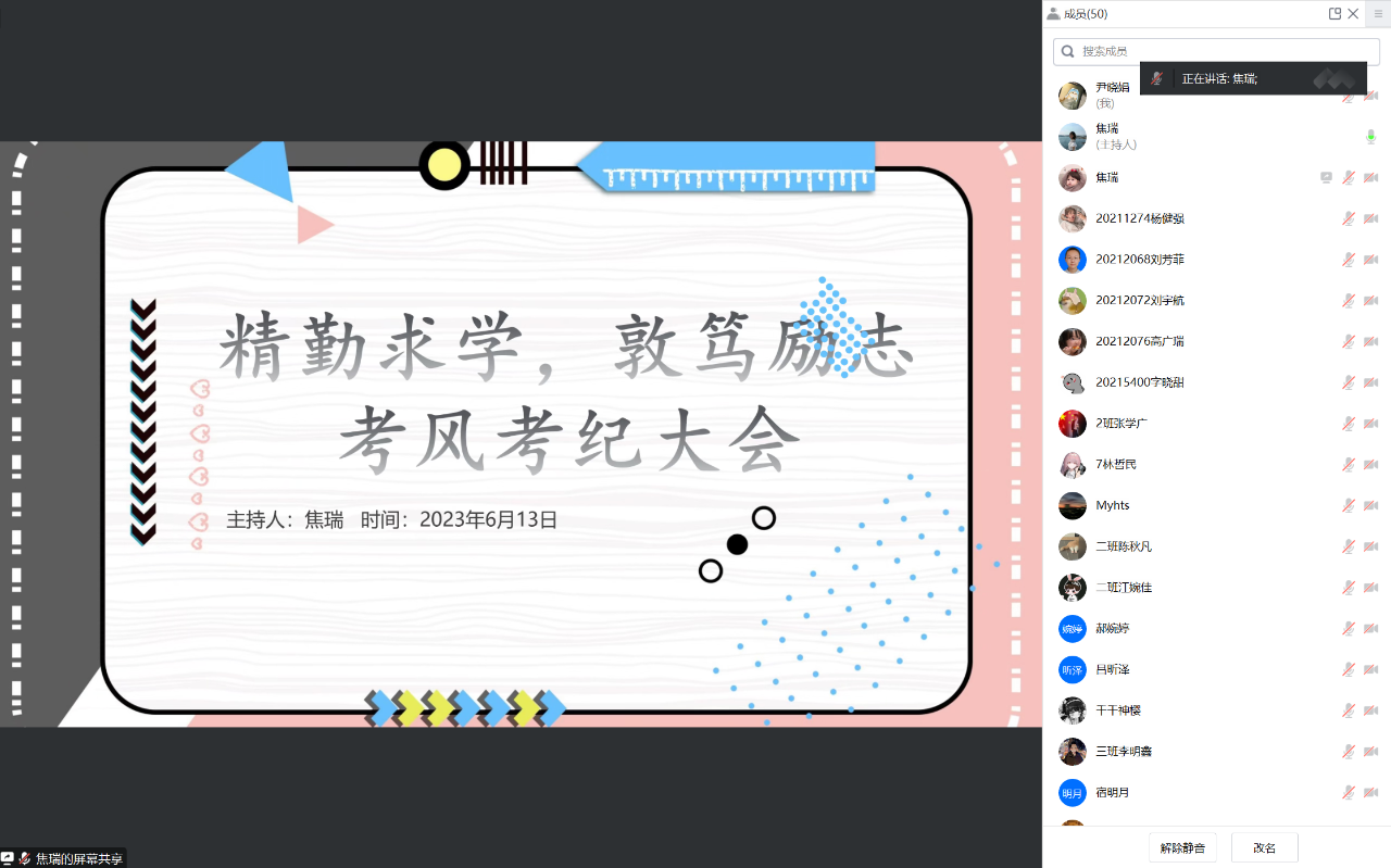 强化诚信意识,严肃考风考纪。为加强学风建设,营造良好的学习氛围,公平工作的考试环境,6月13日—14日,果冻传媒 分年级、分层次召开了以“精勤求学,敦笃励志”为主题的考风考纪暨学生诚信教育大会,会议以线上线下相结合的方式召开,学院辅导员张博伦、焦瑞老师主持会议,各年级学生参加大会。