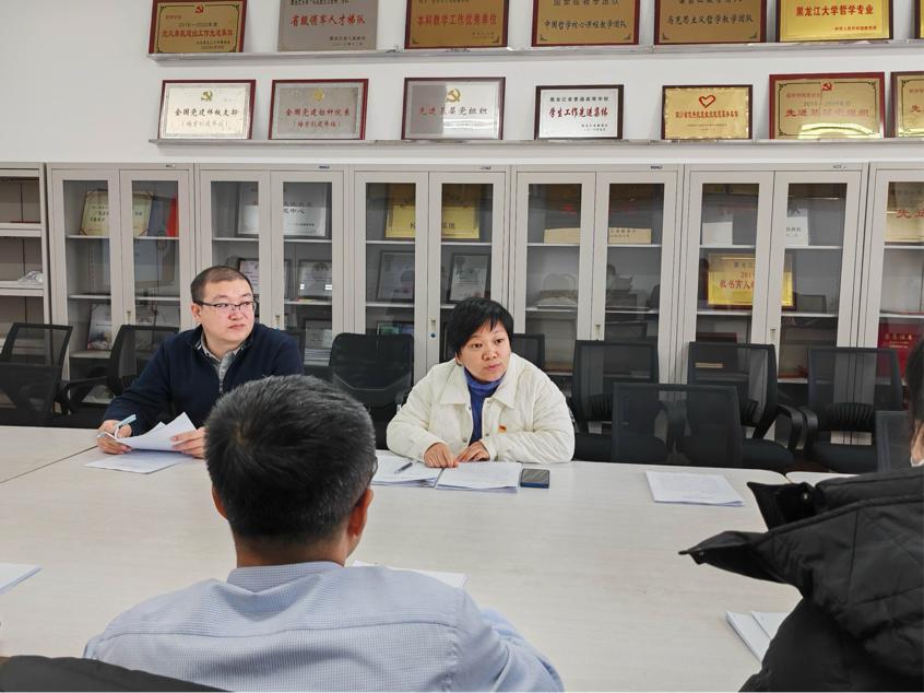 按照“一述一评”的方式,结合各自工作领域,各位党支部书记逐一进行抓基层党建述职,学院党总支书记孙美晖和党总支副书记王贵宇对各位党支部书记的述职进行逐一点评,分别指出各支部存在问题,如毕业年级学生党员多,党建活动开展效果受限、支部建设成熟度不足、主题教育学习深度不足、专业理论优势在党建工作中凸显不到位等问题,并针对存在问题,提出下一步整改意见和建议,一是要结合工作实际,发挥毕业年级学生党员优势,探索开展学生党建特色活动新思路;二是要扎实落实党建工作责任制,严守党员发展“质量关”,把好党员“入口关”,扎实做好学生党员培养教育管理工作;三是要持续优化学习形式,将理论学习和实践活动相结合,不断提升学生党员党性修养;四是要凸显理论优势,依托学科专业平台,加强与其他党支部互联共建,打造党建工作品牌;五是要充分调动支部党员积极性与主动性,发挥好教师党员优势,坚持“走出去”开展互联共建,以实际行动助力龙江振兴发展。