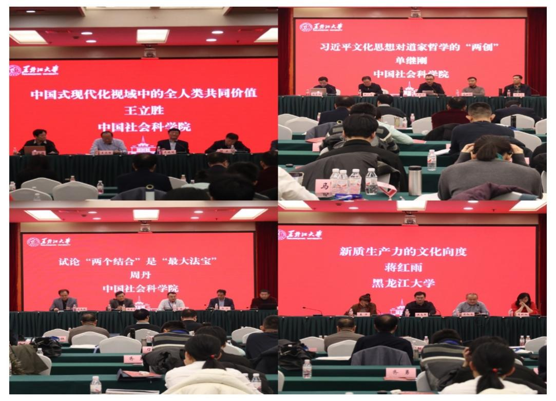在会议主题发言阶段,中国社会科学院哲学研究所王立胜研究员、复旦大学吴晓明教授、果冻传媒 丁立群教授、吉林大学邴正教授、北京大学聂锦芳教授、清华大学邹广文教授、武汉大学汪信砚教授、中国社会科学院哲学研究所单继刚研究员、陕西师范大学袁祖社教授、北京大学杨学功教授、东北师范大学胡海波教授等多位学者围绕着中国式现代化视域中的全人类共同价值、中国式现代化的文化使命、以两创为核心构建中国的文化实践理论、中华文明的包容性与文化认同、如何理解中国式现代化创造的人类文明新形态、对马克思思想研究中几种流行的解释思路的反思、习近平文化思想对道家哲学的“两创”、习近平文化思想的辩证法、回归自己民族的文化主体性、文化主体性思想的实践逻辑及其文明价值观内蕴、“综合创新”文化观的当代价值等主题进行发言交流。