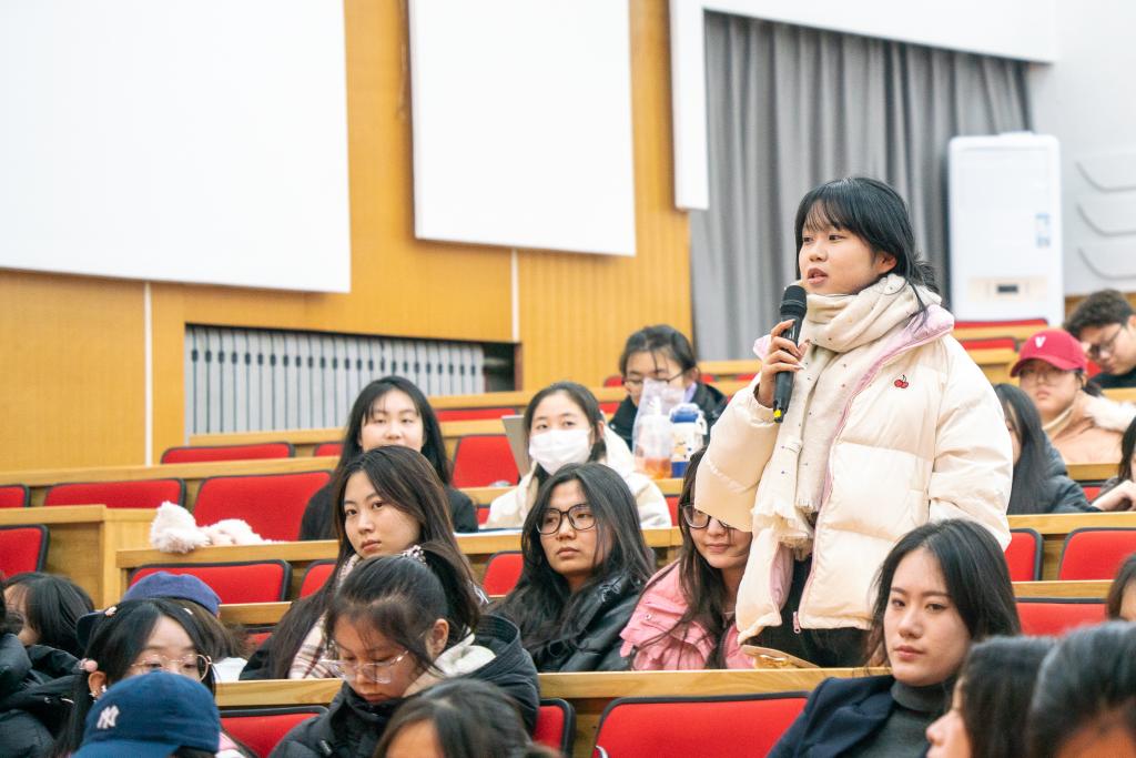领略劳模风采,照亮求学道路。访谈结束后学们受益匪浅,纷纷举手想与魏老师进行互动,在互动提问环节中,同学们提出了“如何做到吃苦而不觉得苦”、“自己想做劳模但担心别人说自己卷”等问题魏老师分享到,做学问“苦”,但是看到学生们脸上露出的笑容看到自己又学术上上了一个台阶苦中就真的有“乐”了。魏老师叮嘱同学们,当听到左右自己想法的声音时,首先要有坚定自己的志向与选择,以真才实学服务社会;第二要保持热爱,追寻心中所爱,修科学之真,修人文之善;第三要潜心学问,静心笃志,无畏失败。