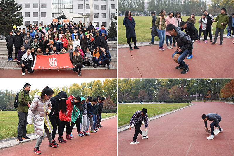 首先,学生会主席袁传志向大家介绍了本次运动会的运动项目与相关规则,并希望同学们积极参与到活动中来,注意安全。此次趣味运动会由多个趣味项目组成,所有同学被分成五组,以组为单位进行比赛。第一个项目是同心协力侧跑,在这个项目中,同学们相互配合,学会了怎样更好的与他人合作。第二个项目是企鹅漫步,同学们像企鹅一样用腿夹球比赛竞走,全身心地投入在比赛之中,场下的同学们不断为其加油呐喊,气氛热烈。随后,又进行了 “摸石头过河”、“踩气球”等项目,尽管天气寒冷,但是同学们个个兴致盎然,争分夺秒地进行着比赛。最后,学生会主席为优秀选手颁发了荣誉奖状,并对同学们的比赛精神与合作精神作出肯定,本次趣味运动会在全体成员的合影后圆满结束。