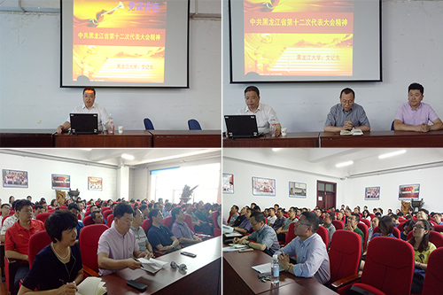 文记东老师指出,学习省第十二次党代会精神首先要深刻认识省第十二次党代会的历史背景,省第十二次党代会是在全面建成小康社会决胜阶段、在全省全面振兴发展关键时期召开的一次重要会议。其次,要认真领会省第十二次党代会总结的成就经验,牢牢把握党代会确定的鲜明主题。必须坚决同以习近平同志为核心的党中央保持高度一致,必须坚决贯彻落实习近平总书记系列重要讲话精神和治国理政新理念新思想新战略,必须坚决贯彻落实习近平总书记对我省重要讲话的精神,牢牢把握思想引领,牢牢把握“一条新路子”的前进方向。第三,要充分认清党代会提出的崇高使命,紧紧抓住党代会部署的主要任务。坚持把转方式调结构作为振兴发展的重中之重,按照习近平总书记关于“坚持发展现代农业方向,争当农业现代化建设排头兵”的要求,全面深化改革,激发振兴发展的动力活力,同时要全面从严治党,为振兴发展营造风清气正的政治生态。最后,文记东老师指出要充分认识省第十二次党代会的重大意义。这次党代会为奋力走出黑龙江全面振兴发展新路子奠定了坚实思想基础,同时选举产生了新一届省委领导班子作为带领全省党员干部群众、谱写中华民族伟大复兴中国梦龙江篇章的坚强组织保证。果冻传媒
