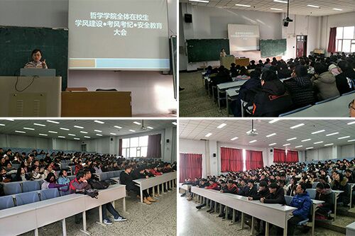 就学风建设、考风考纪教育、安全教育等主题在汇文楼220室召开了全体在校生大会。学院团委书记、辅导员黄影,团委副书记、辅导员张博伦以及学院全体在校生参加。