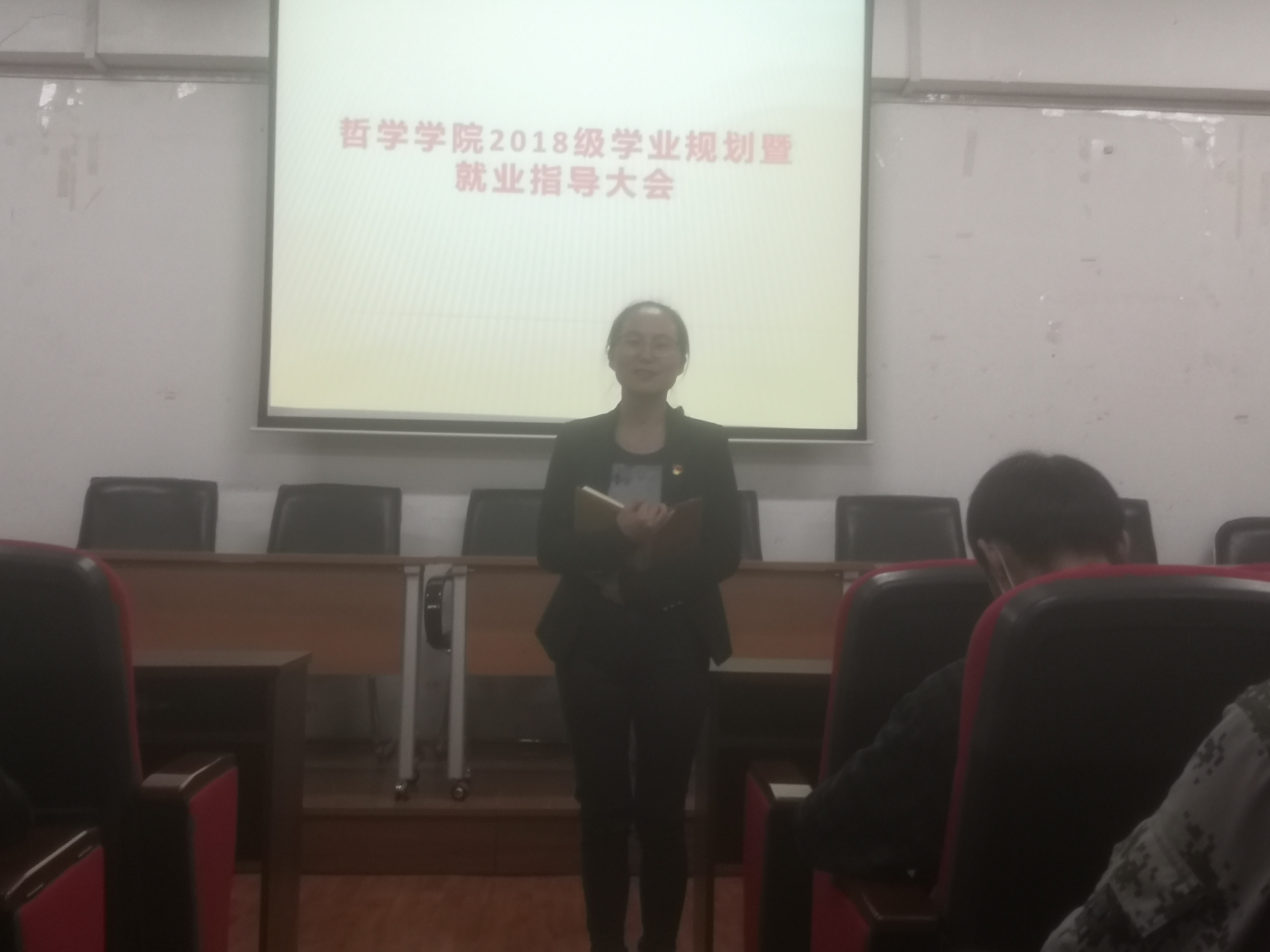随后,2018级学院导师黄影老师通过哲学专业往届毕业生师哥师姐的例子,解读了升学及就业的多种形式路径。她指出,保研除优保外,还有研究生支教团、保研辅导员等专项保研项目。在就业方面,黄影老师指出,结合专业特点,学院毕业生在公考及事业单位考试方面较有优势,除公考国考外,还有公考省考、选调生选拔、事业单位考试以及三支一扶、西部计划等多种项目。强调同学们要明确自身的发展规划,树立目标和努力方向。在答疑环节中,黄影老师还对同学们关心的问题进行耐心讲解。