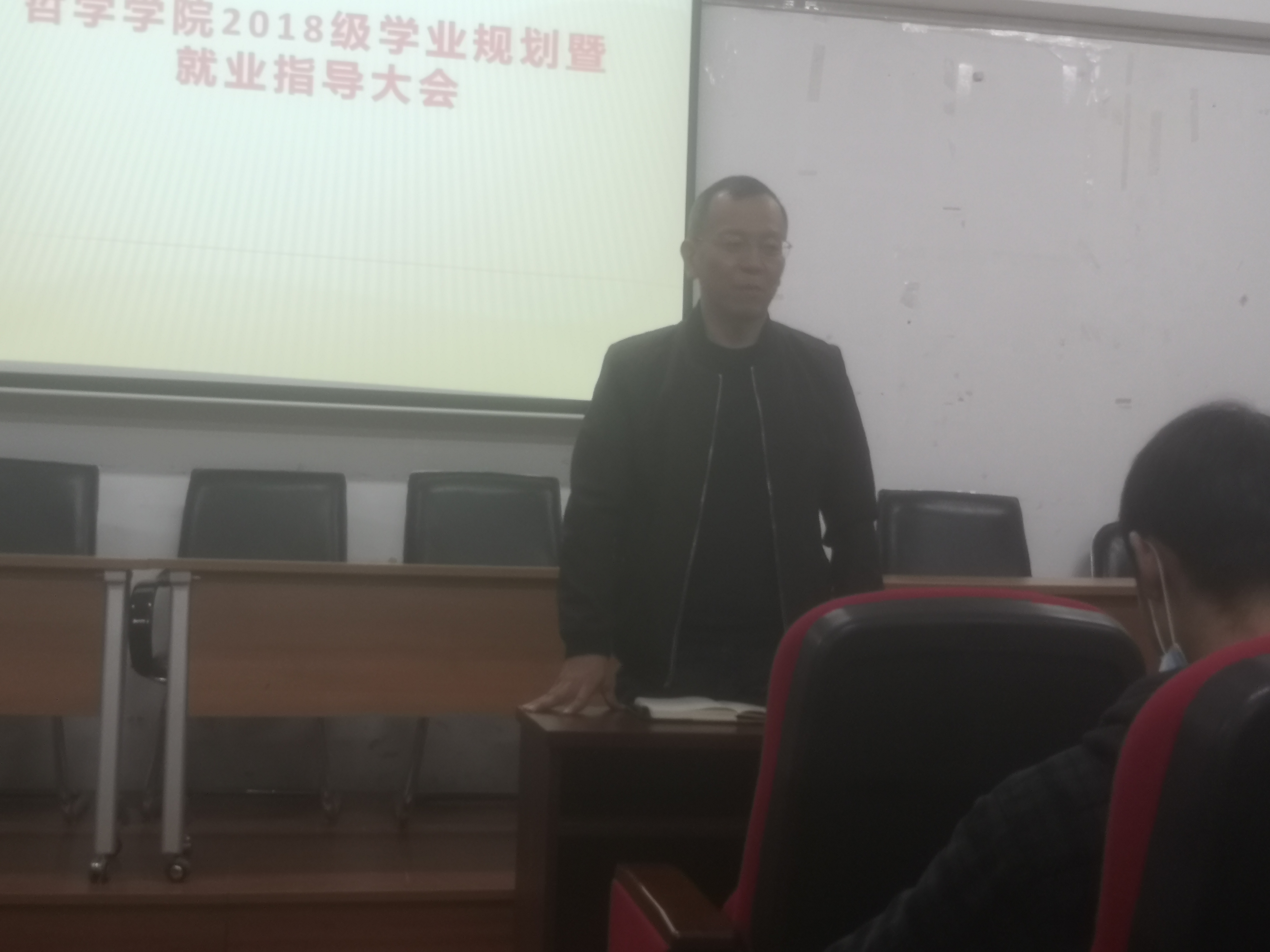 正处级辅导员孙庆斌、2018级学业导师黄影、2018级辅导员张博伦出席,2018级全体学生参加会议。