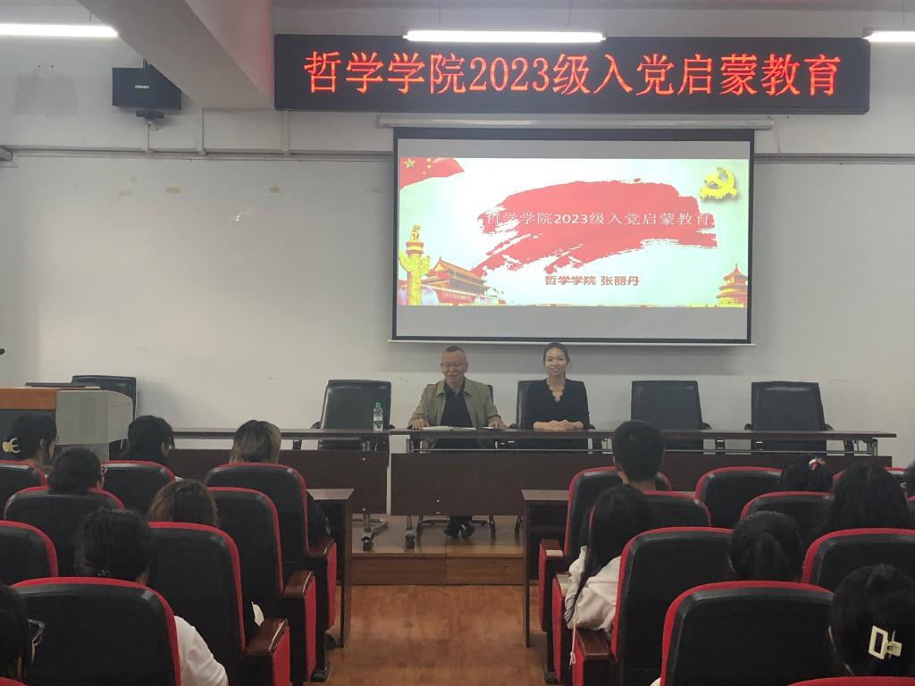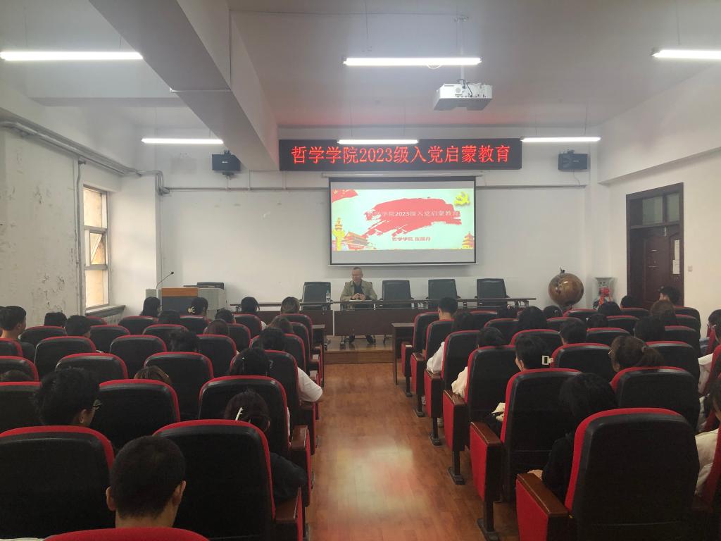 会上,张丽丹副书记带领学院全体2023级新生回顾了中国共产党成立102周年以来的光辉奋斗历程,开展了深入学习贯彻习近平总书记在黑龙江省视察和主持召开新时代推动东北全面振兴座谈会时的重要讲话重要指示精神专题宣讲,强调作为新时代黑大学子,作为哲学专业学生,要始终牢记“年轻一代成为奋力拼搏、振兴中华的一代,实现第二个百年奋斗目标就充满希望”殷殷嘱托,积极向党组织靠拢,端正入党动机,传承黑大精神,擦亮青春底色,以实际行动为新时代龙江振兴发展贡献力量。