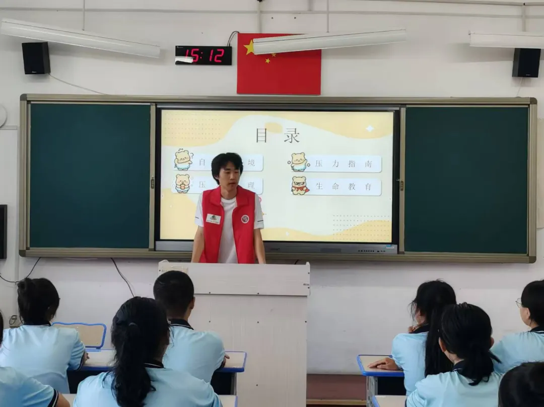 活动中,八位主讲人依次来到教室,与同学们面对面交流开始。主讲人携带了精心准备的礼物赠送给同学们,活动在一片欢乐的气氛里进行。各个主讲人在设置的互动环节中,与同学们打成一片,分享了与压力管理,自信培养等相关的心理学概念和压力缓解方法,一定程度上缓解了同学们的压力。