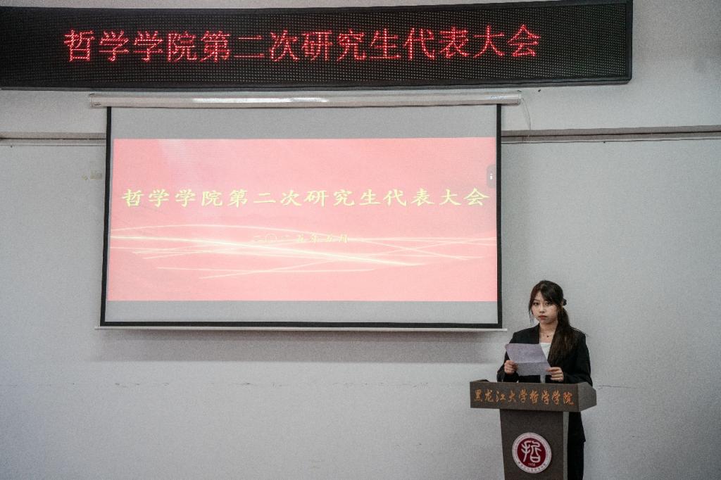 党委副书记王贵宇、团委副书记焦瑞、赵慧雪、第一届研究生会成员及研究生代表出席本次大会。会议由第一届研究生会主席陈诗主持。