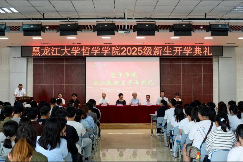 哈尔滨工程大学马克思主义学院教师高清宇代表校友致辞,他深情回顾了13年前在黑大的求学时光:在汇文楼聆听老师讲授三大哲学史,往返于新旧图书馆查阅资料,在体育馆与老师们打球挥汗,在家属区咖啡馆碰撞思想火花,记忆仍清晰。他分享学业经历,本科毕业后保研南京大学,考入人大读博,坦言人生与学术进步离不开黑大哲学的滋养,还提及学院领导曾赴南京、北京看望校友,让他倍感温暖。最后,他寄语新生:"未经审视的人生是不值得过的"这句苏格拉底名言,以哲学理解生命本质、拓宽格局;发扬“爱智致用,批判创新”精神,刻苦钻研,成长为堪当民族复兴大任的时代新人。