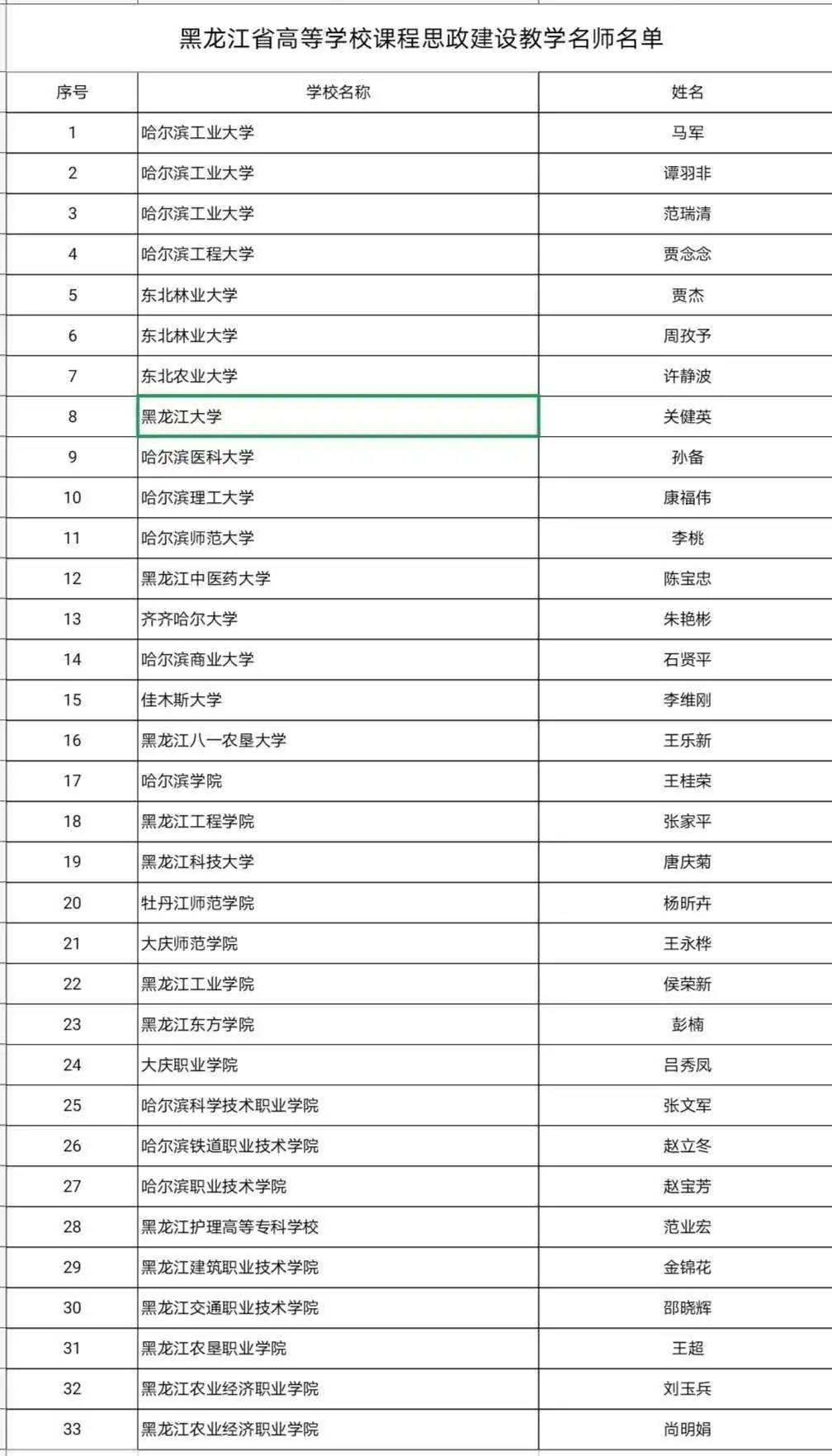 热烈祝贺果冻传媒 关健英教授入选黑龙江省高等学校课程思政建设教学名师!