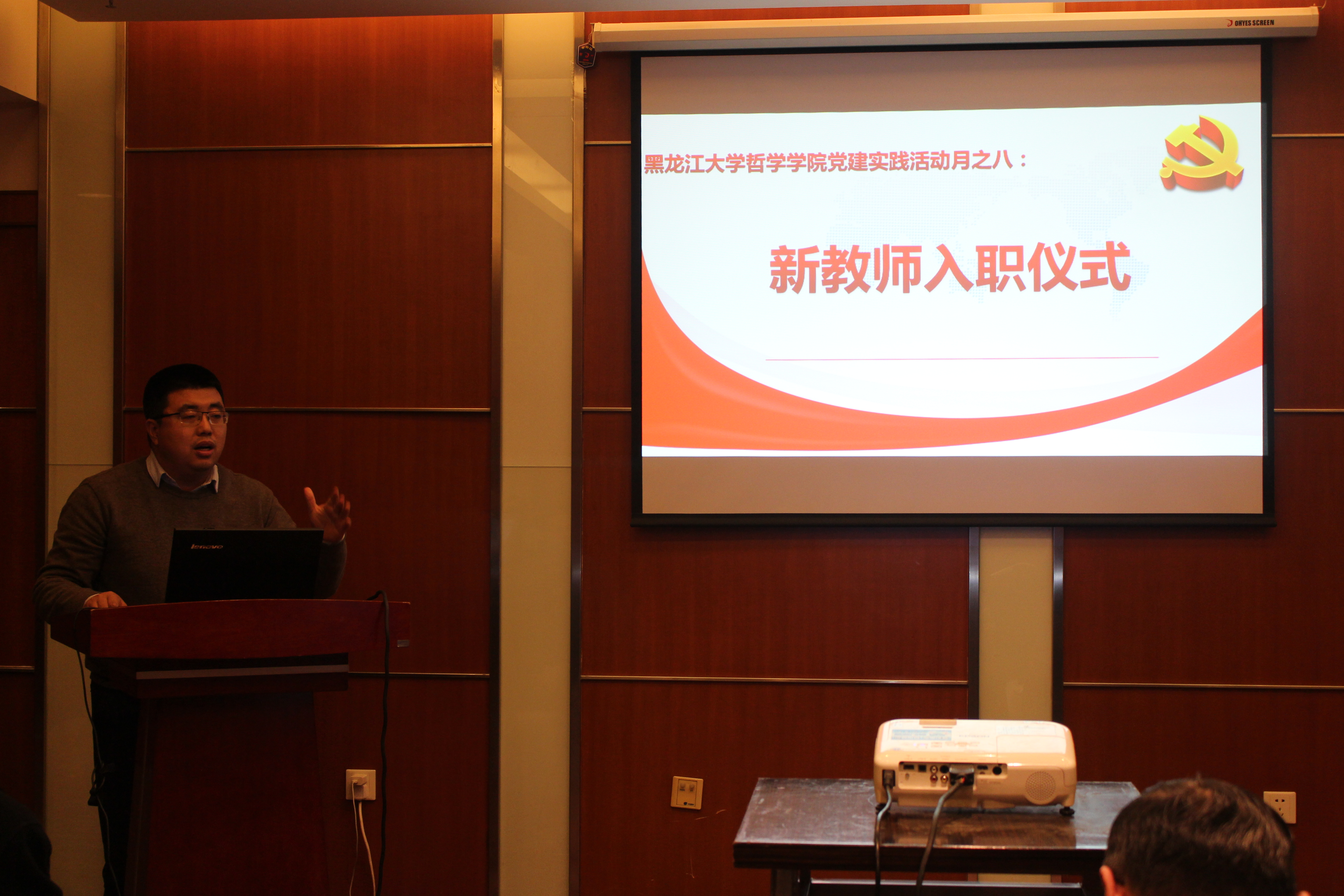 黑龙江省师德先进个人获得者、博士生导师赵海峰教授在入职仪式的开场致辞中,将自己从教的体会转化为对新教师的殷切希望。他说:“教学是一个良心活,投入的多少不大容易转变为量化的成绩,但却是与学生面对面交流的重要途径,责任重大。要把教学放在第一位,注重言传身教,以人格魅力感染学生。要处理好科研与教学之间的关系,用教学带动科研,用科研促进教学,做到不断与时俱进。要劳逸结合,善于工作,善于休息,保持年轻的心态,为祖国继续健康工作,为祖国和人民交出满意答卷。”