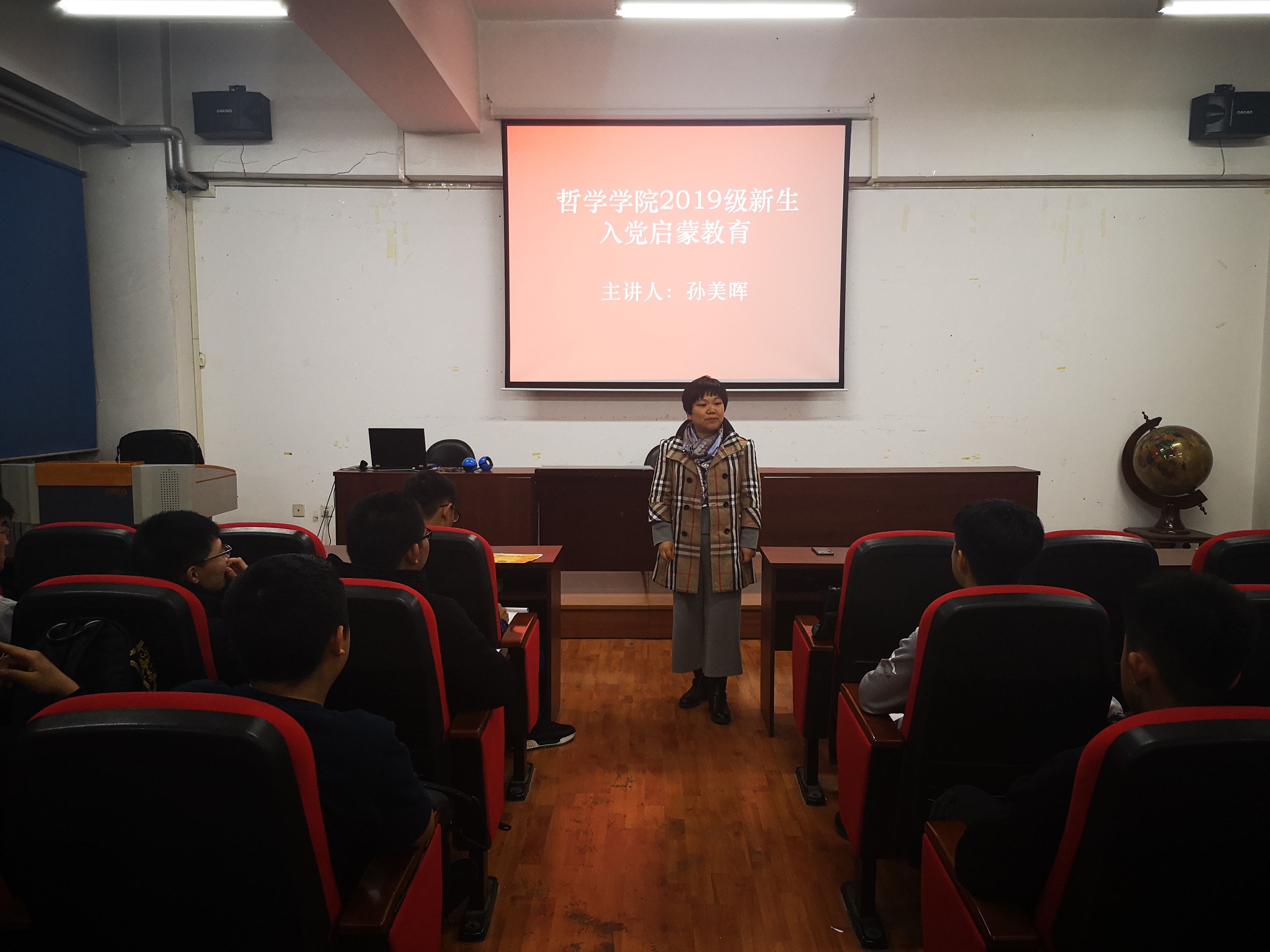党总支书记孙美晖、2019级辅导员孙庆斌为新生进行了入党启蒙教育。
