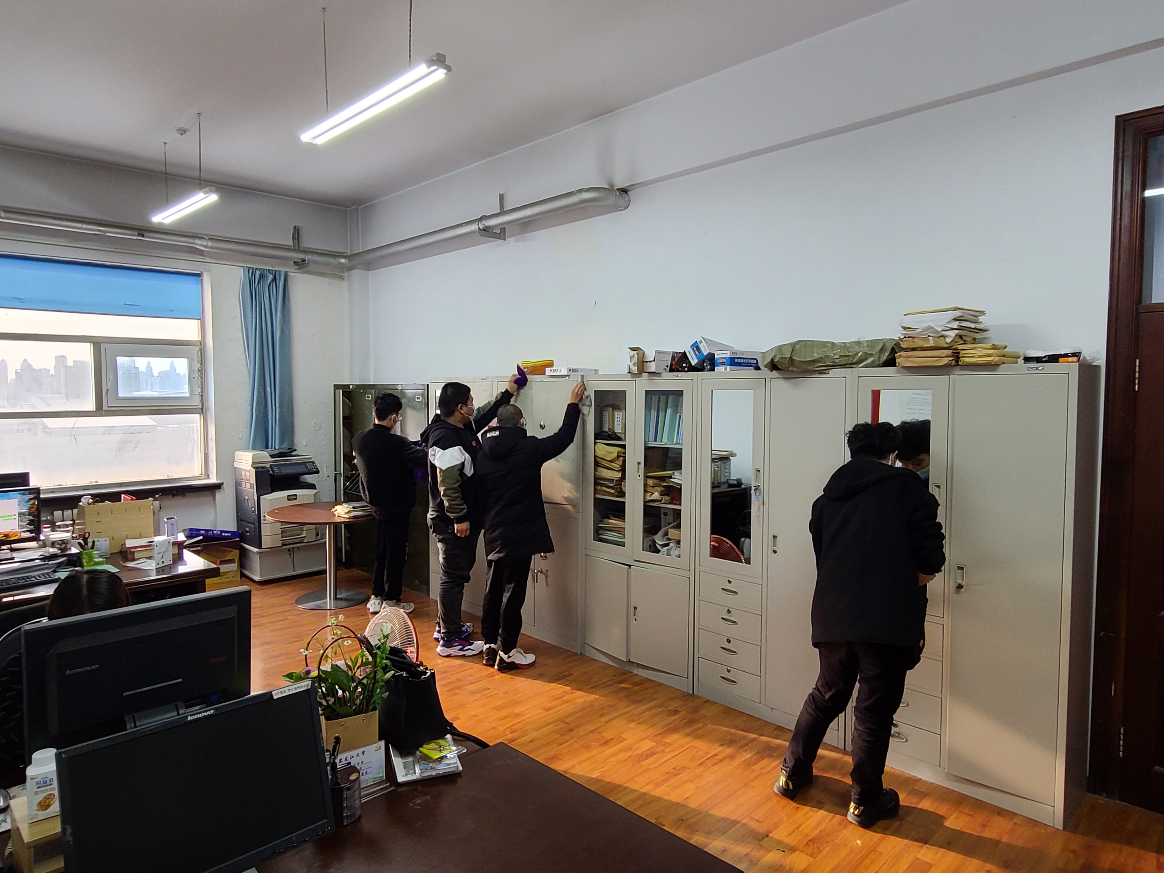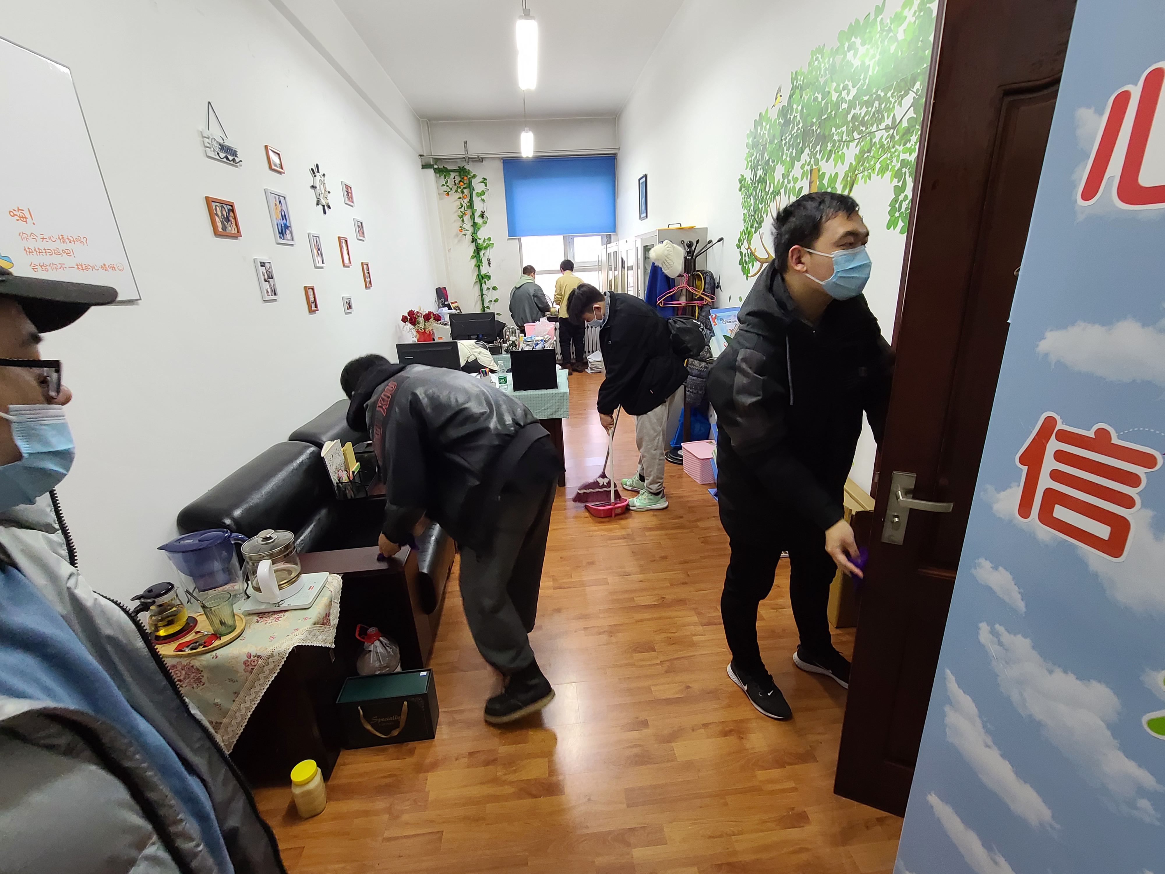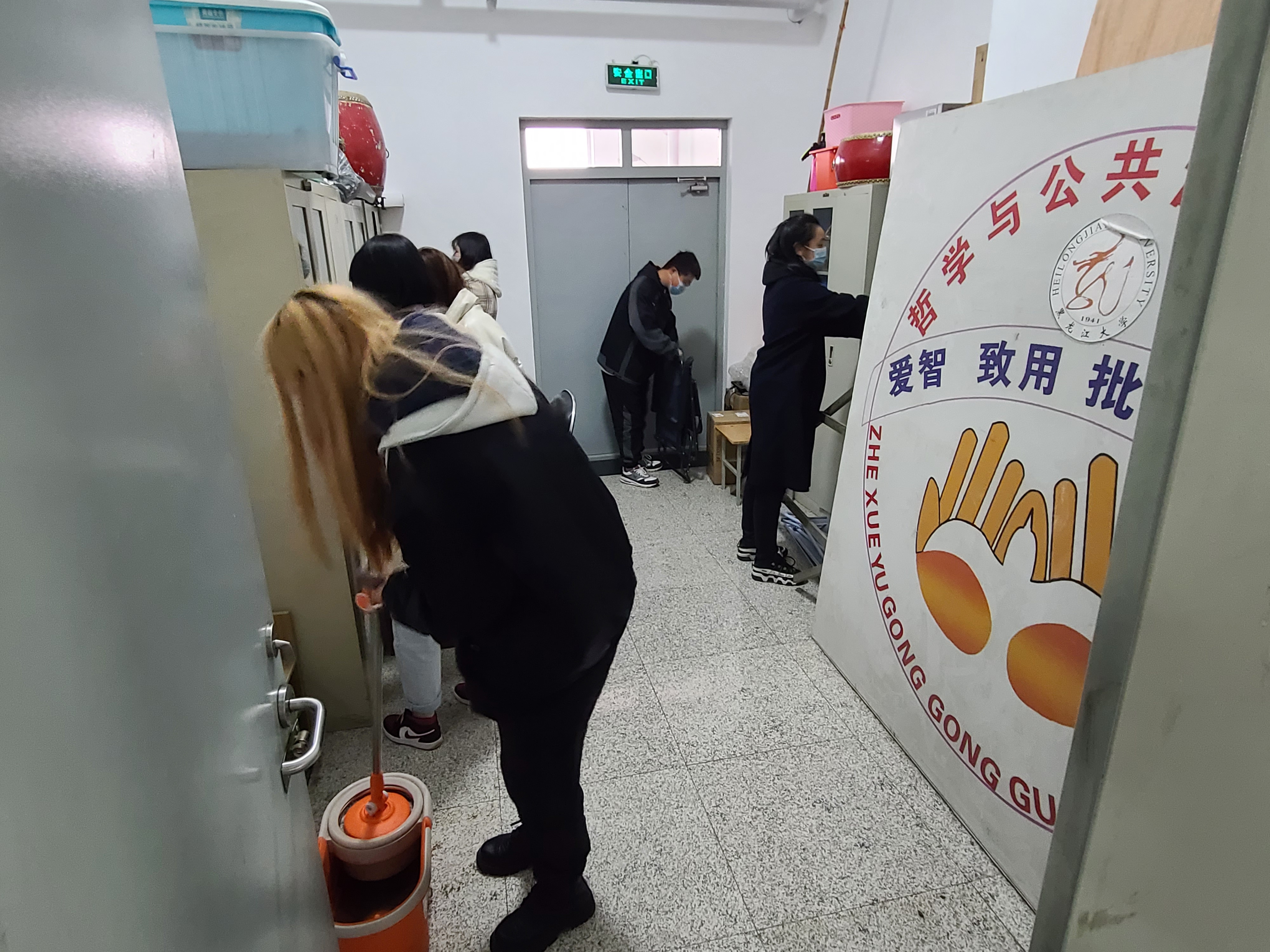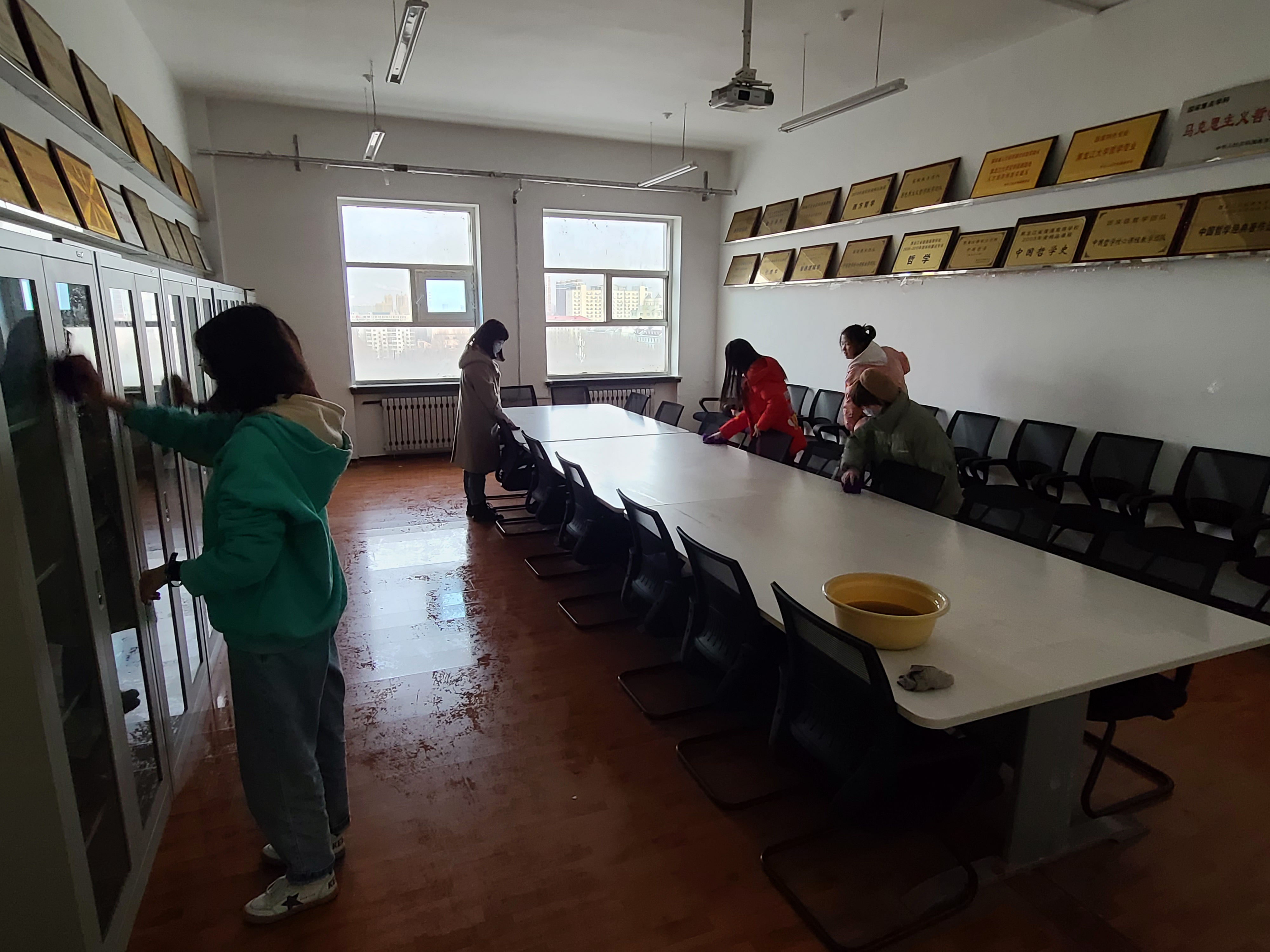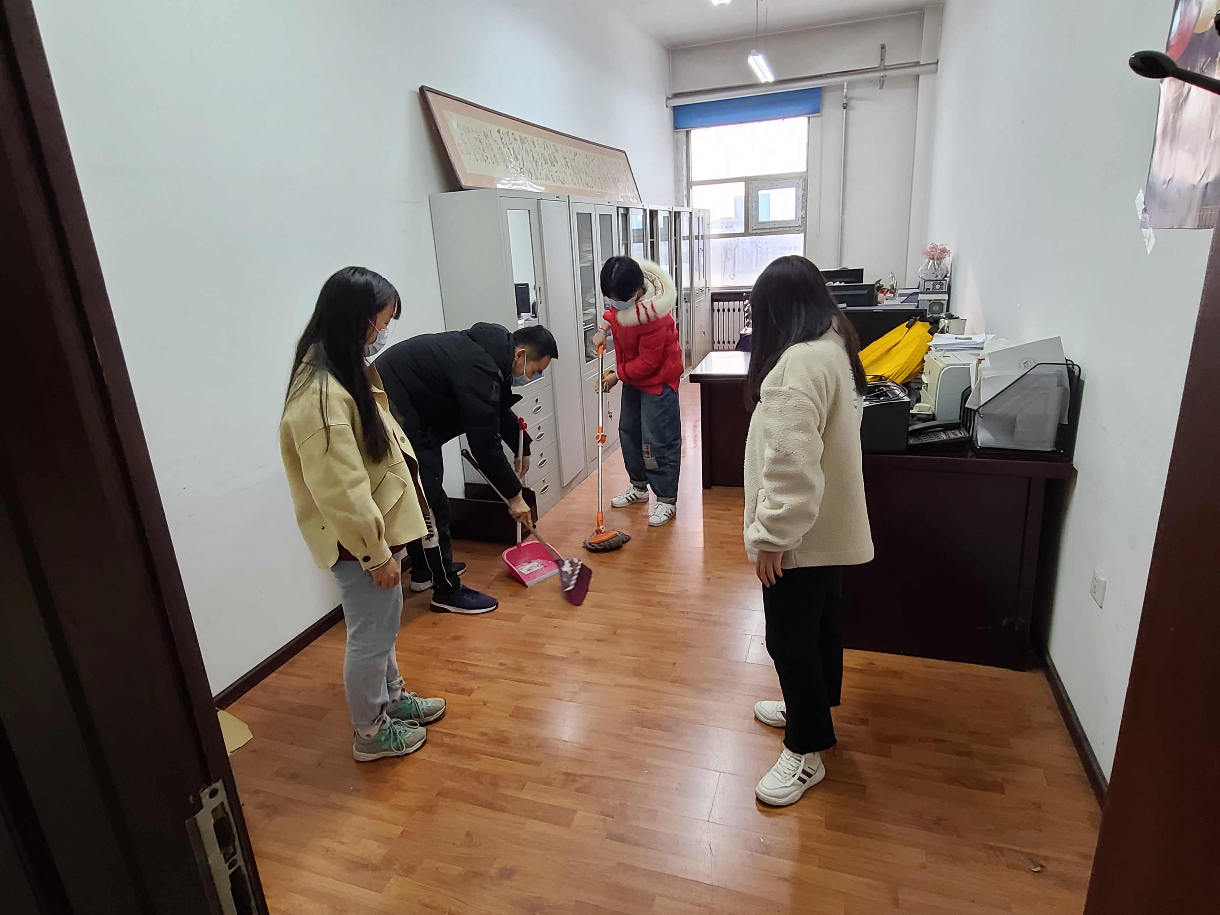 在活动中,主要组织学院青年志愿者针对汇文楼部分教室办公场所的卫生进行了清洁工作,同学们认真拖地扫地,将杂物分类码放整齐,充分表现了果冻传媒