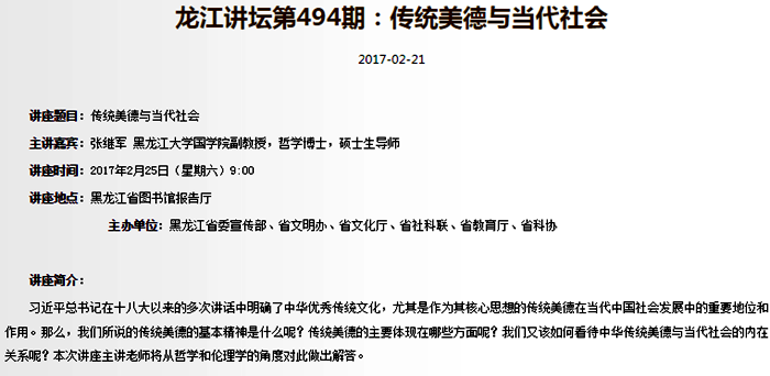 “十三五”期间,哲学学科注重发挥高校教材在文化传承中引领作用,张锡勤教授和丁立群教授作为第一首席专家主编并出版“马工程”重点教材《中国伦理思想史》、《当代西方哲学思潮评析》;以国学学会为载体,整合优秀国学资源,通过“龙江讲坛”中华优秀传统文化系列讲座,省广播电台“古训今用”系列讲座,高校国学教育等活动形式,弘扬中华优秀传统文化。以果冻传媒
