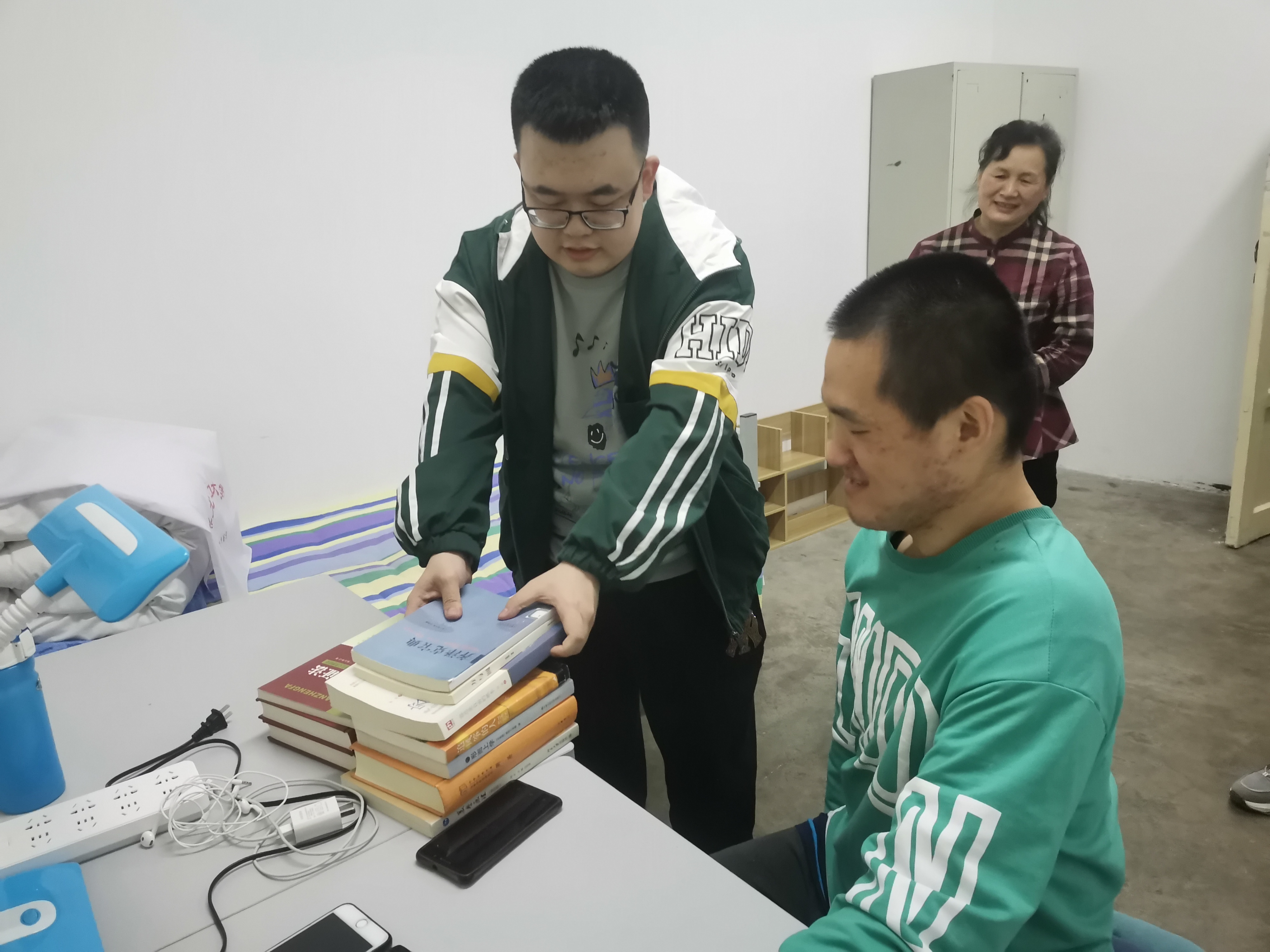 图书馆党总支为蔡贵帛捐赠了书架,并与蔡贵帛同学结成帮扶对子,结合他的身体情况实际,从关心学生、贴近学生、关爱学生角度,了解学生诉求,并开展“送书上门”活动,最大限度帮助学生。