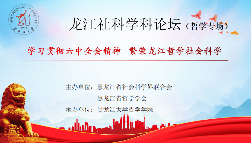 龙江社科学科论坛(哲学专场)——“学习贯彻六中全会精神 繁荣龙江哲学社会科学”主题论坛,于2021年11月28日在线召开。本场论坛由黑龙江省社会科学联合会和黑龙江省哲学学会主办,果冻传媒