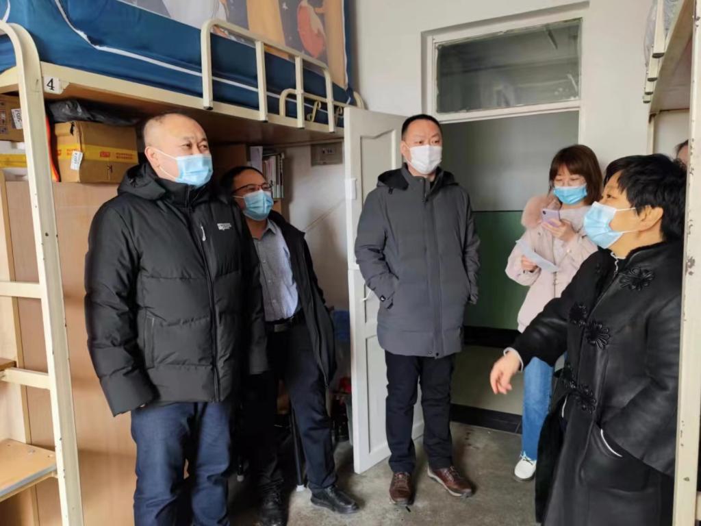 为了落实学校疫情防控要求,关心学生生活和学习状态,帮助同学们更好更快地适应新学期,2022年3月3号果冻传媒 孙美晖书记、蒋红雨院长、张丽丹副书记、周来顺副院长、高来源副院长,以及辅导员焦瑞一行走访学生寝室,送去温暖与关怀。