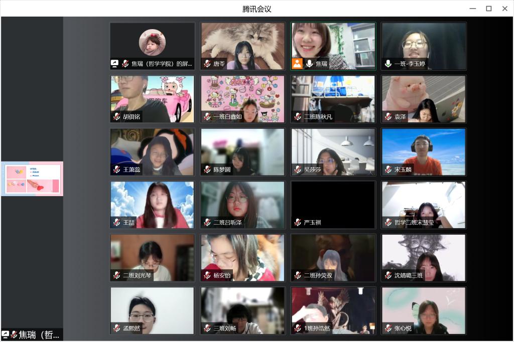 彼此支持,相互勉励。团体辅导接近尾声,焦老师希望大家享受当下,既然无法改变环境,那就换个心态,享受当下宁静的时光,潜心静气做研究,培养自己的兴趣爱好探索发现校园和同学的美好,同时,感谢大家互相真诚陪伴的一小时,在困难面前,彼此支持,互相陪伴,交流倾听,是很重要的。同学们也积极发言互相勉励。