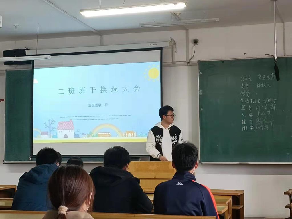 21级分批次分班级组织“责任在心间,青春向未来”班干换选班会。