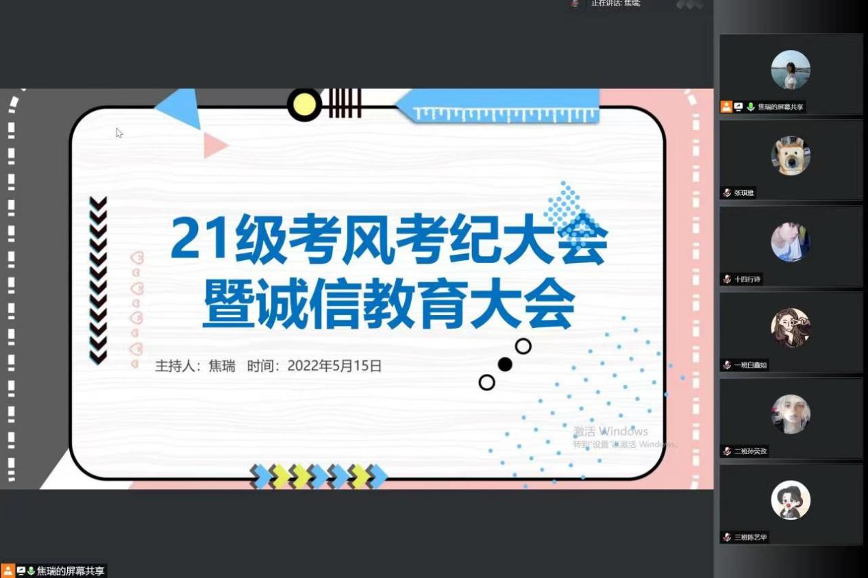分年级分层次于5月13日-5月15日召开期末考风考纪大会暨诚信教育大会。会议分别由孙庆斌老师、张博伦老师、焦瑞老师主持,果冻传媒