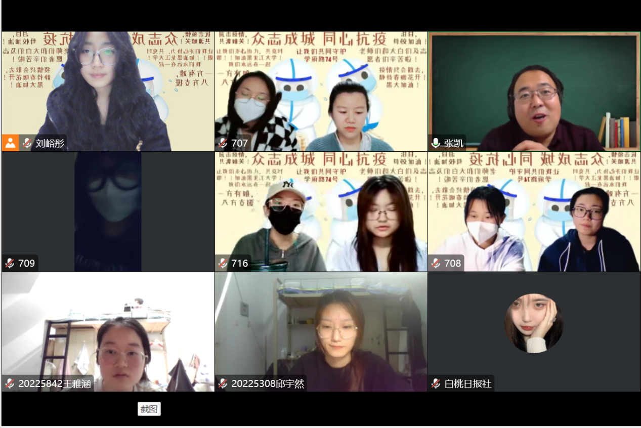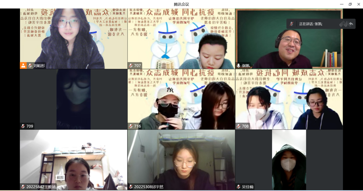 张凯老师鼓励同学们虽然疫情将大家的身体困于一隅,但是尚有自由之思想可以翱翔,应利用好这段宝贵时间,静下心来做一些过去想做、却迟迟未能完成有意义的事情,如一部心心念念的电影、一本翻阅未毕的好书,或是仅仅给自己一段身心的放空。警醒同学们切莫被烦闷情绪所控制空耗时光,而是要充分发挥理论自信与行动自觉,在特殊时刻更显黑大风采。最后,张凯老师总结道“我们生活在了一个会被历史长久铭记的时代”。