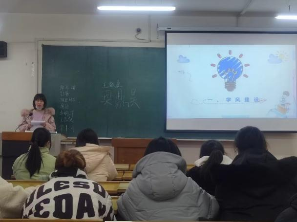 于2023年3月1日“精勤求学,笃行不怠”2022级年级大会,2021级、2022级辅导员焦瑞主持会议,2022级全体同学参加会议。