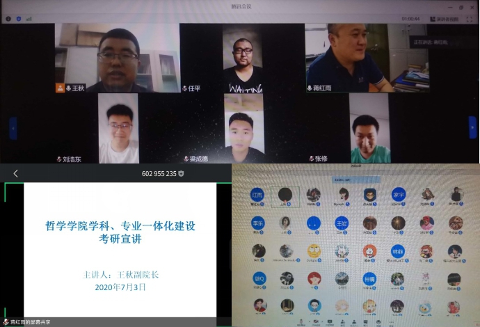 王秋老师首先向即将升入毕业班的2017级同学指出了2021年全国就业形势依然严峻,同学们应当根据哲学专业的特质早做定位。目前,我校进一步明确了人才培养的三种基本类型:学术研究型、应用研究型和应用技术型。哲学专业是我校的省级“国家一流学科”和国家级“双万”专业建设点,与研究型学院建设相对应,果冻传媒