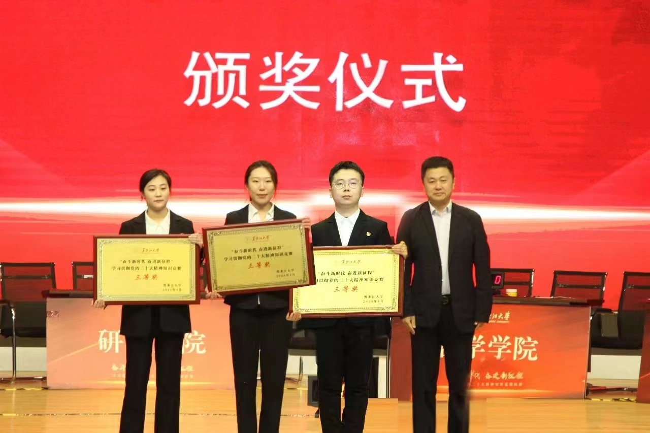 团委书记张博伦老师的带领下,参赛选手2020级张鑫同学、2020级邢睿桐同学和2020级张苗苗同学在赛前做好了充足的准备,熟读精读党的二十大报告、党章、党史、习近平新时代中国特色社会主义思想等多方面内容,持续准备几个月,以精心充足的准备,在初赛、复赛、半决赛多场较量中脱颖而出。