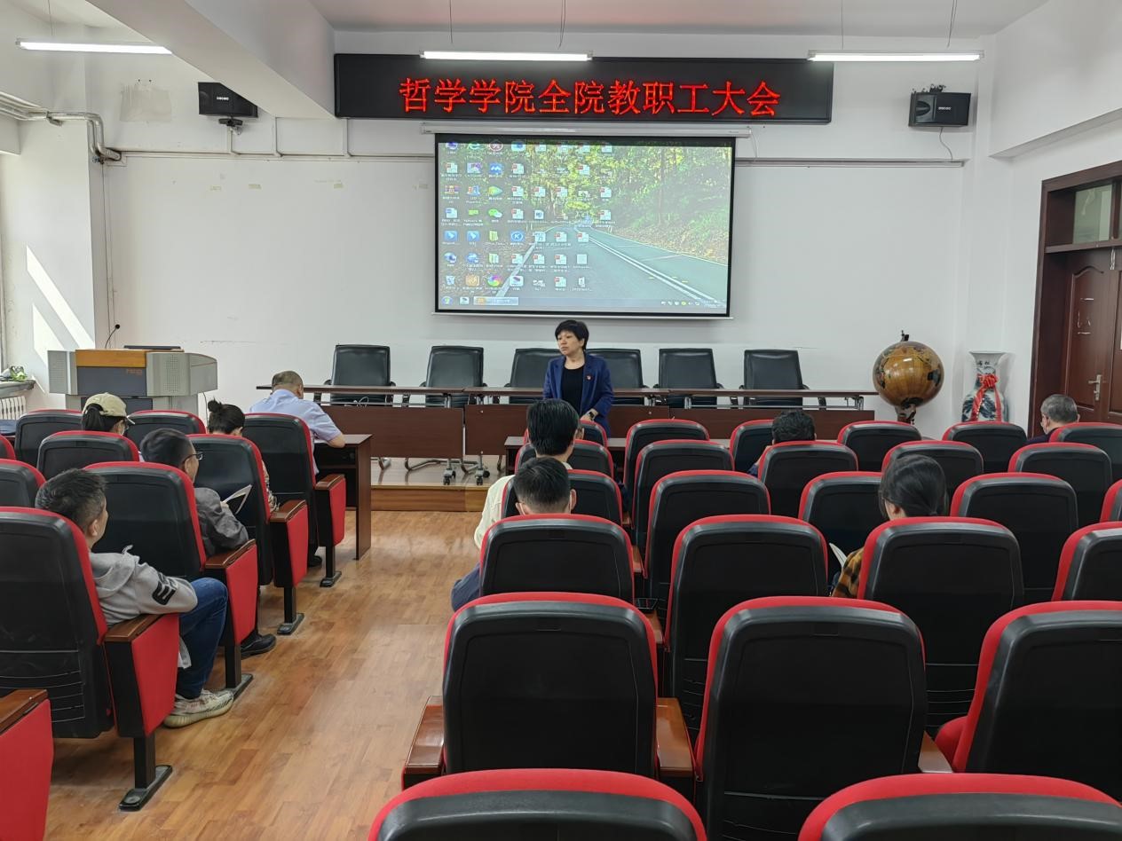 党总支在汇文楼937会议室召开学习贯彻习近平新时代中国特色社会主义思想主题教育工作推进会暨全院教职工大会。学院班子全体成员和学院全体教职工参加本次会议,会议由党总支书记孙美晖主持。