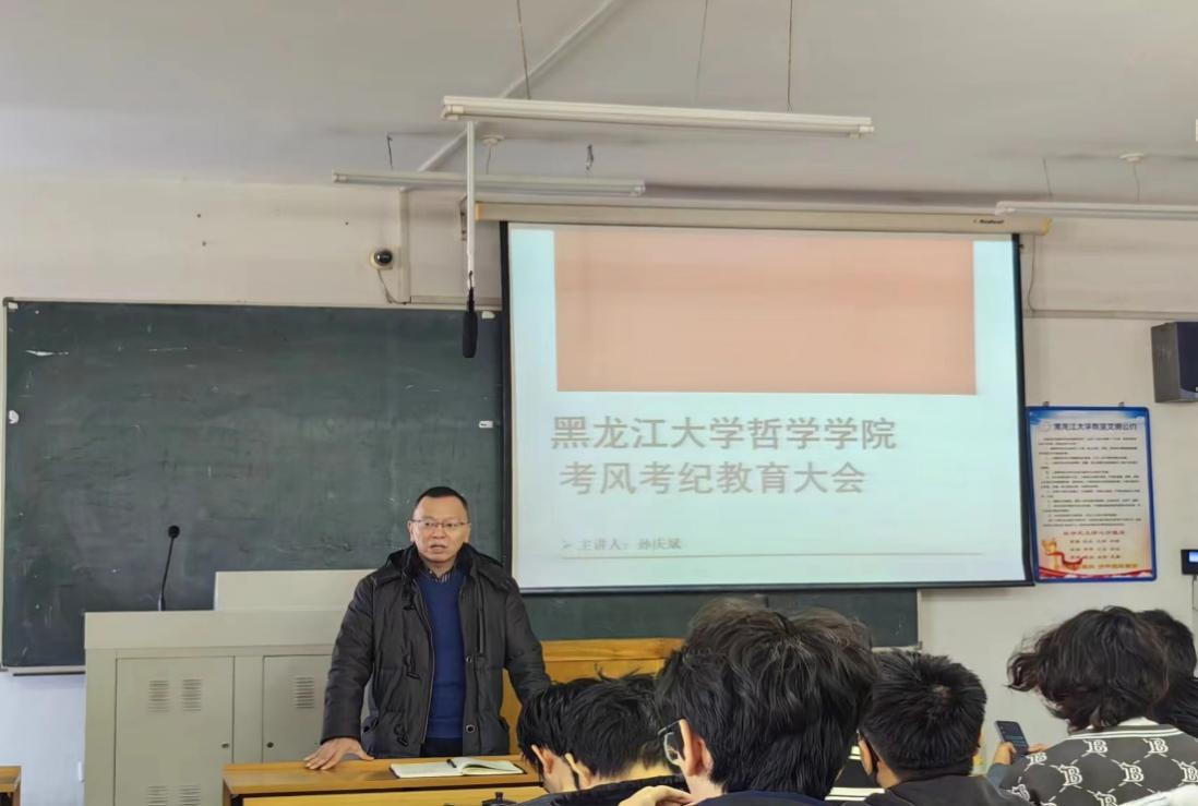 学生管理规定》并领学了考试纪律的要点,班级主要干部作了表态发言,孙庆斌老师针对既往的一些违纪事件做了案例剖析警示提醒。孙老师对2023级学生提出了明确的要求,就是要做到零违纪,完成这个目标需要年级的每一个同学认真遵守学校的相关规定。最后,孙老师希望同学们顺利完成本学期的学业任务,在考试中发扬风采,取得好成绩。