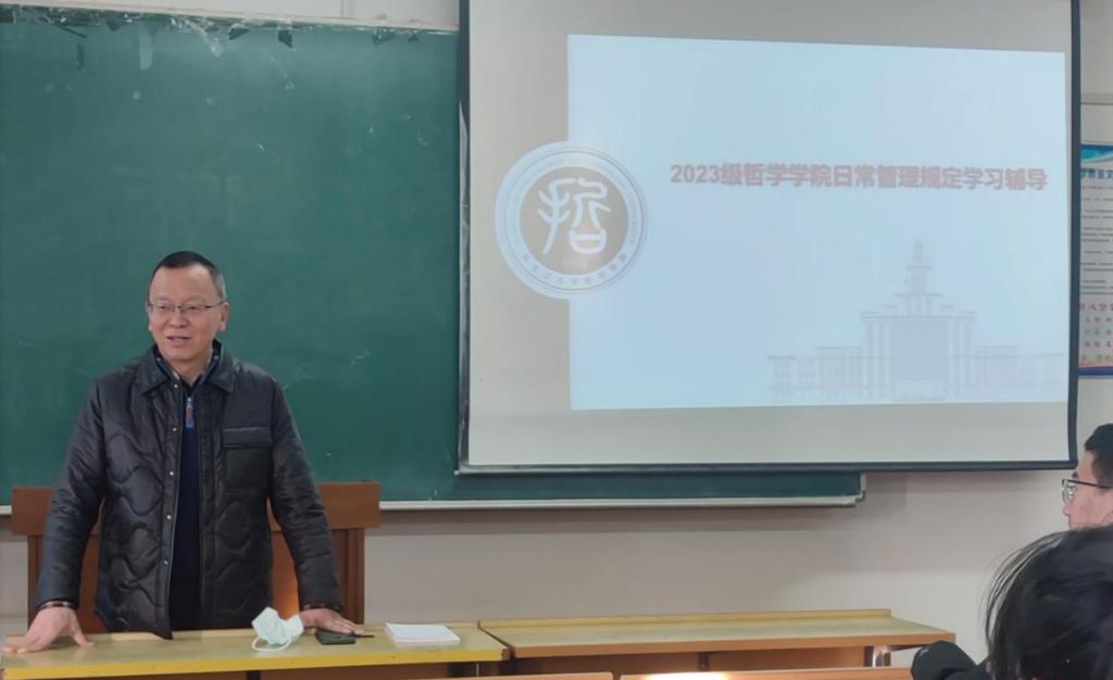 2023级开展了日常管理规定的学习辅导,对下一步学习工作进行了动员部署,会议由辅导员孙庆斌老师主持并进行了学习辅导,2023级全体同学参加了此次会议。