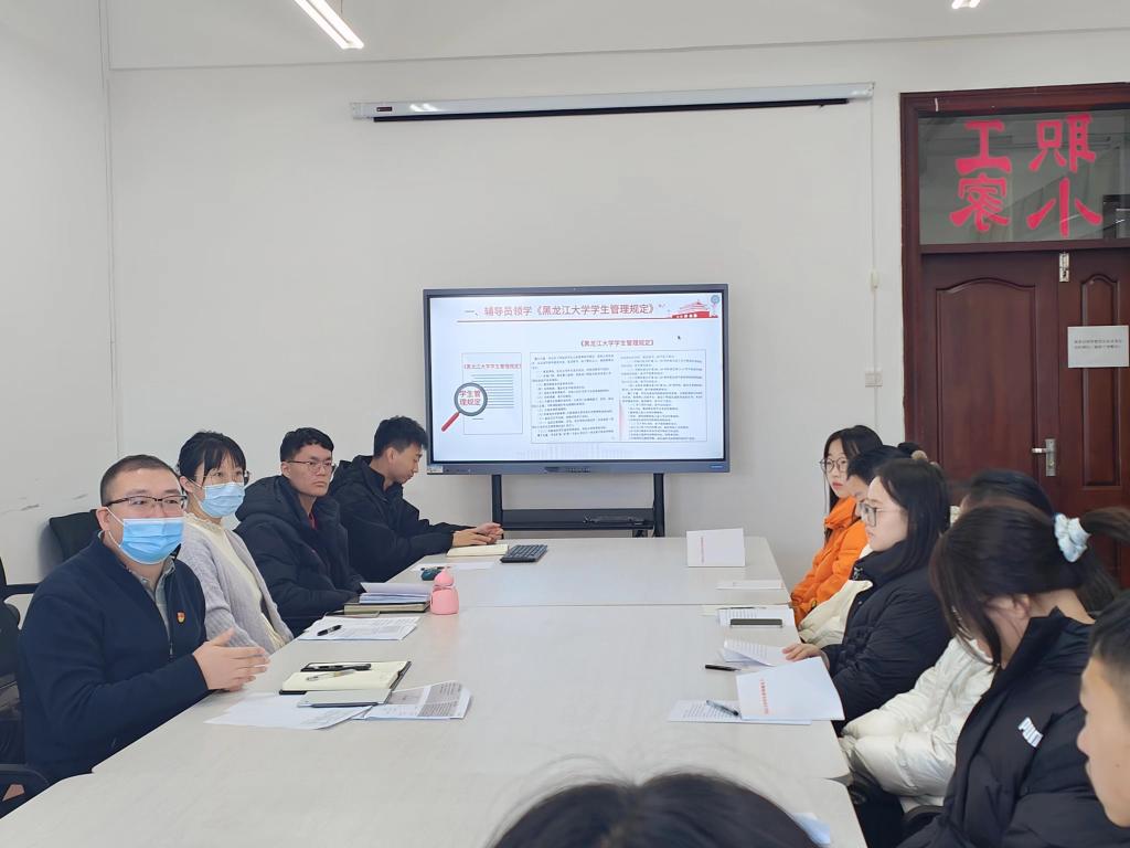 学生工作队伍高度重视学生日常管理教育工作,学院党总支副书记王贵宇主持召开学院12月份学生工作例会,带头领学新版《果冻传媒