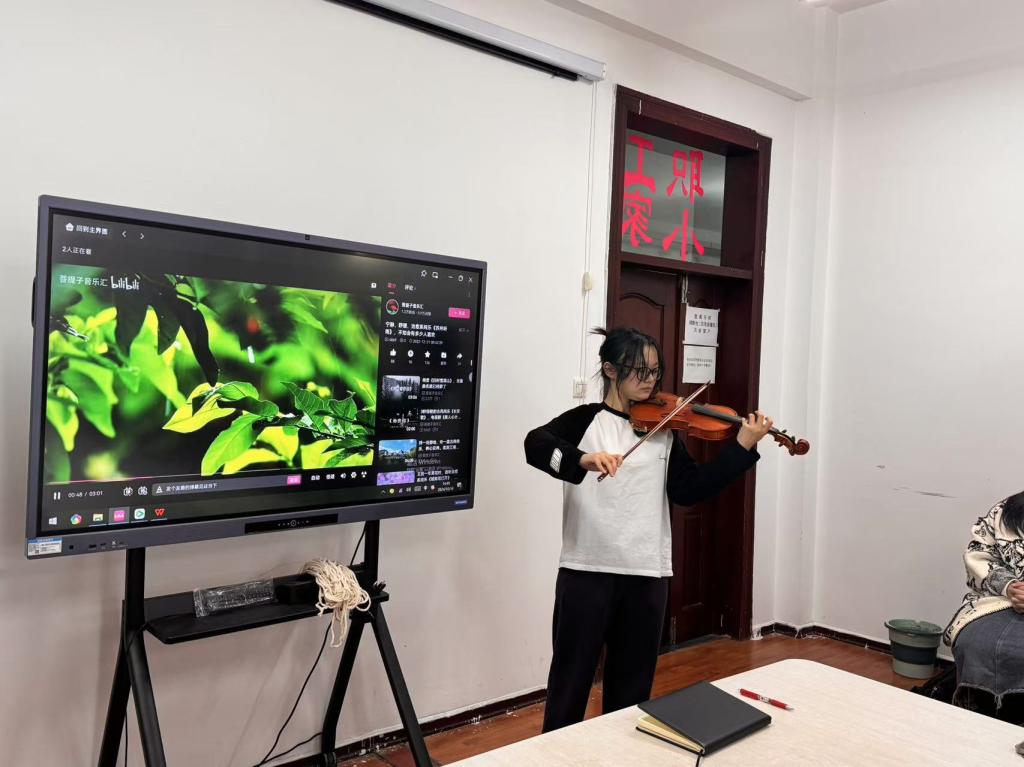 在文化交流环节,李亚男同学演奏小提琴曲《苏州听雨》,借助音乐的力量传递出民族文化的和谐与温暖,悠扬的旋律如同一条纽带将各民族的文化紧密地联系在一起,引发了大家对民族文化传承与发展的深入思考。