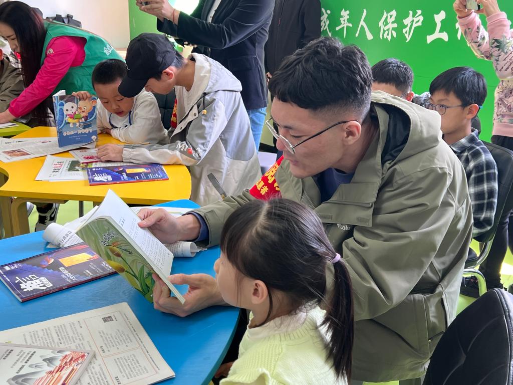 的学生志愿者与小朋友们共读好书,一同开展阅读之旅。志愿者用心陪伴小朋友,让小朋友们在书海中尽情畅游。在志愿者的领读中,小朋友们汲取到了很多新鲜知识,收获良多。