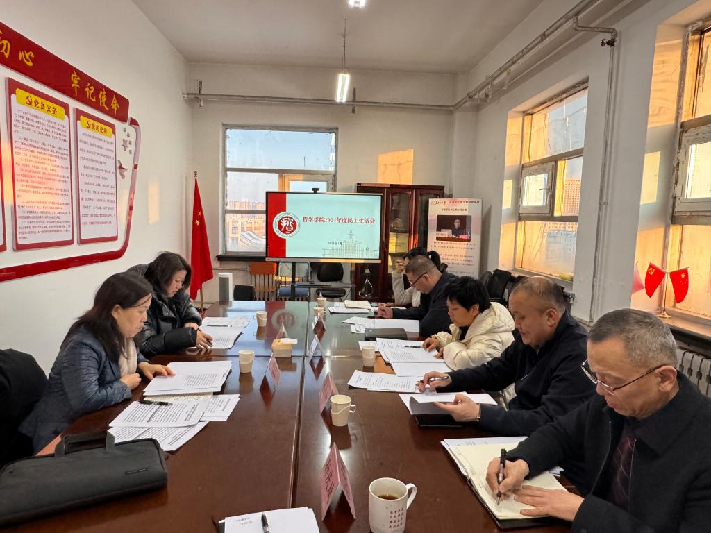 按照学校《关于开好2024年度二级党组织处级领导班子党员领导干部民主生活会的通知》要求,1月8日下午15时,学院党委在汇文楼916室召开处级领导班子党员领导干部民主生活会。学校招生就业指导中心主任陈宝凤、统战部副部长刘艺婷列席督导,学院班子全体成员参会。会议由学院党委书记孙美晖主持。