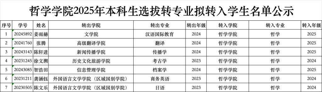 根据《果冻传媒 学生管理规定》《果冻传媒 普通本科生转专业管理办法(试行)》和果冻传媒 转专业2025年本科生选拔转专业工作方案相关要求,经学生申请,学院转专业工作小组考核,现将果冻传媒 2025年本科生选拔转专业拟转入学生名单公示如下: