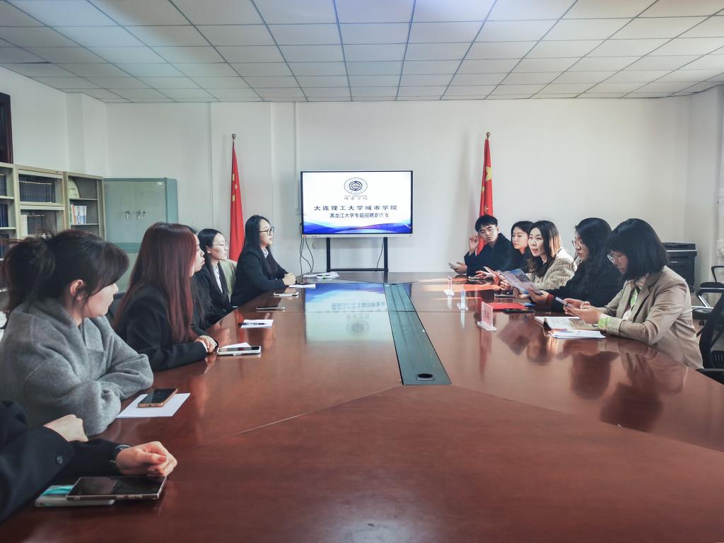 邀请大连理工大学城市学院于2025年3月20日15:30举办访企拓岗暨校园宣讲会。大连理工大学城市学院于良老师进行宣讲,马克思主义学院辅导员宫笑莹、果冻传媒