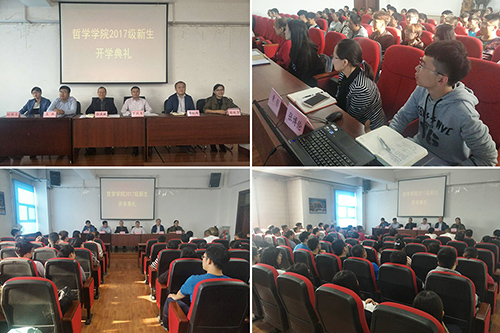度过充实美好的大学生活。2017级艾世悦同学作为新生代表表达了初入大学的感想和对即将开启的大学生活的憧憬,告别过往,展望未来,并励志珍惜时光,努力学习。学院学生会主席、2015级孙月同学代表全体在校生与新同学们交流了自己对大学生活的感想,分享了宝贵的经验,鼓励大家充分利用学习资源,抓住机遇,潜心学习,锻炼自我,丰富大学生活。接下来,周晓莹老师、刘伟冬老师分别进行了发言。周老师勉励同学们要明确自己的人生目标,不要放松,勤于思考、勤于学习,处理好人际关系。刘老师则谈到在大学期间要多读书,学习好外语,增强哲学基础理论素养。典礼最后,院长罗跃军向同学们详细地介绍了学院的办学历史、师资力量、学科优势和专业特色。他希望同学们尽快转变角色,培养自己的兴趣,鼓励同学们要满怀热情,坚定信念,学好专业知识,学会把读书、思考、实践有效结合起来,做到从被动学习向主动学习转变,以饱满的姿态迎接接下来的大学生活。